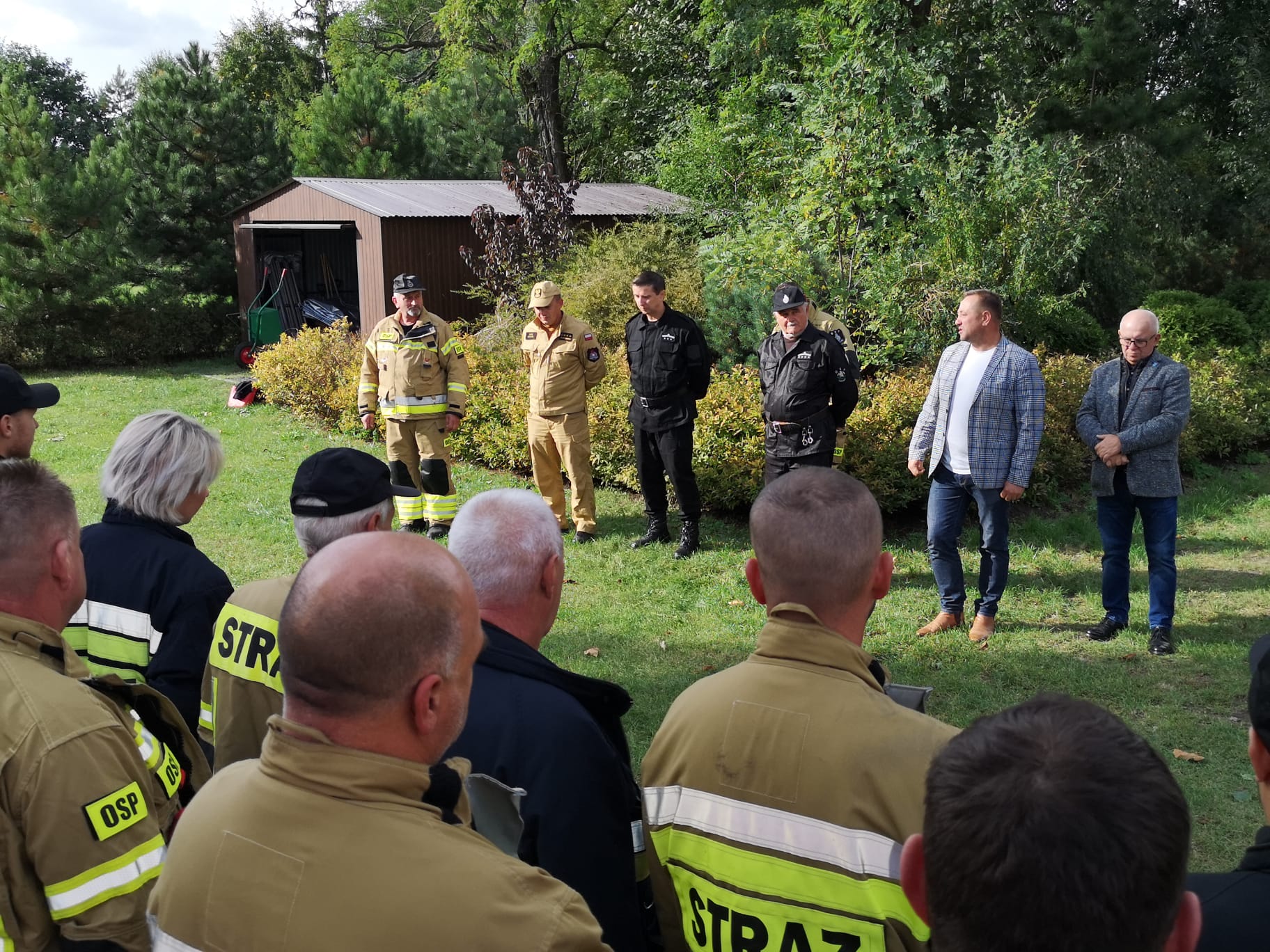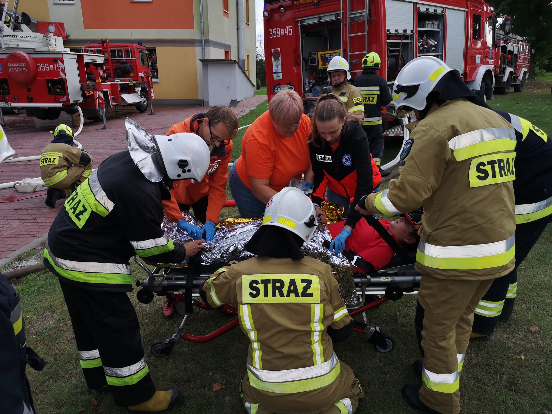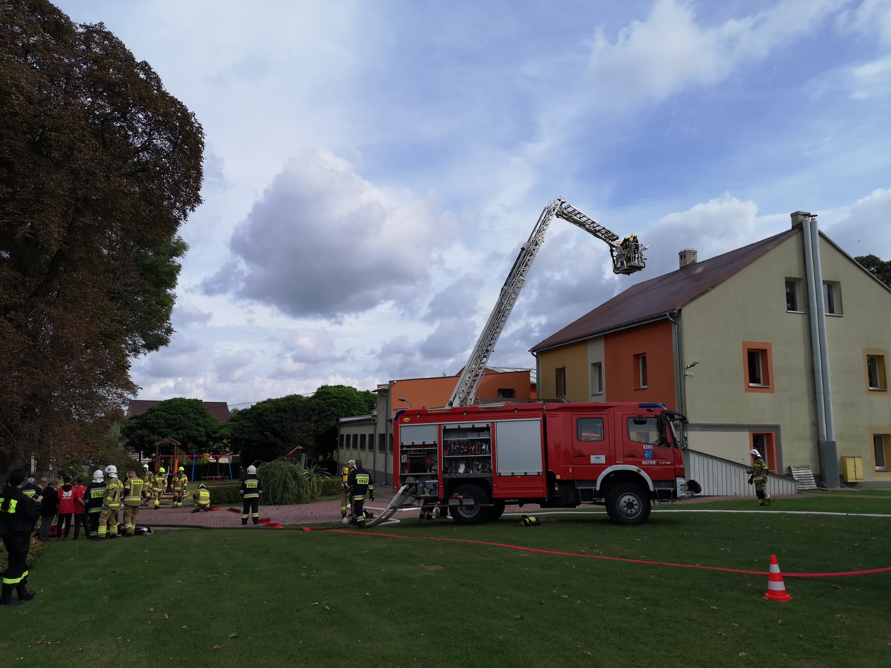 W dniu 24.09.2023 roku w szkole podstawowej w Mokrzeszy odbyły się gminne manewry jednostek Ochotniczych Straży Pożarnych. Scenariusz ćwiczeń przewidywał pożar dachu hali sportowej, który powstały na skutek prowadzonych prac remontowych, a następnie rozprzestrzenił się na budynek szkoły. Plan manewrów obejmował ugaszenie powstałego pożaru poprzez podanie trzech prądów gaśniczych na palące się obiekty, podanie dwóch prądów gaśniczych w obronie na sąsiadujące ze szkołą budynki, ewakuację oraz udzielnie kwalifikowanej pierwszej pomocy poszkodowanym pracownikom a także budowę zaopatrzenia wodnego z pobliskiego zbiornika wodnego. Po przeprowadzonych ćwiczeniach miało miejsce podsumowanie ćwiczeń, podczas którego oceniona została poprawność wykonanych założeń.