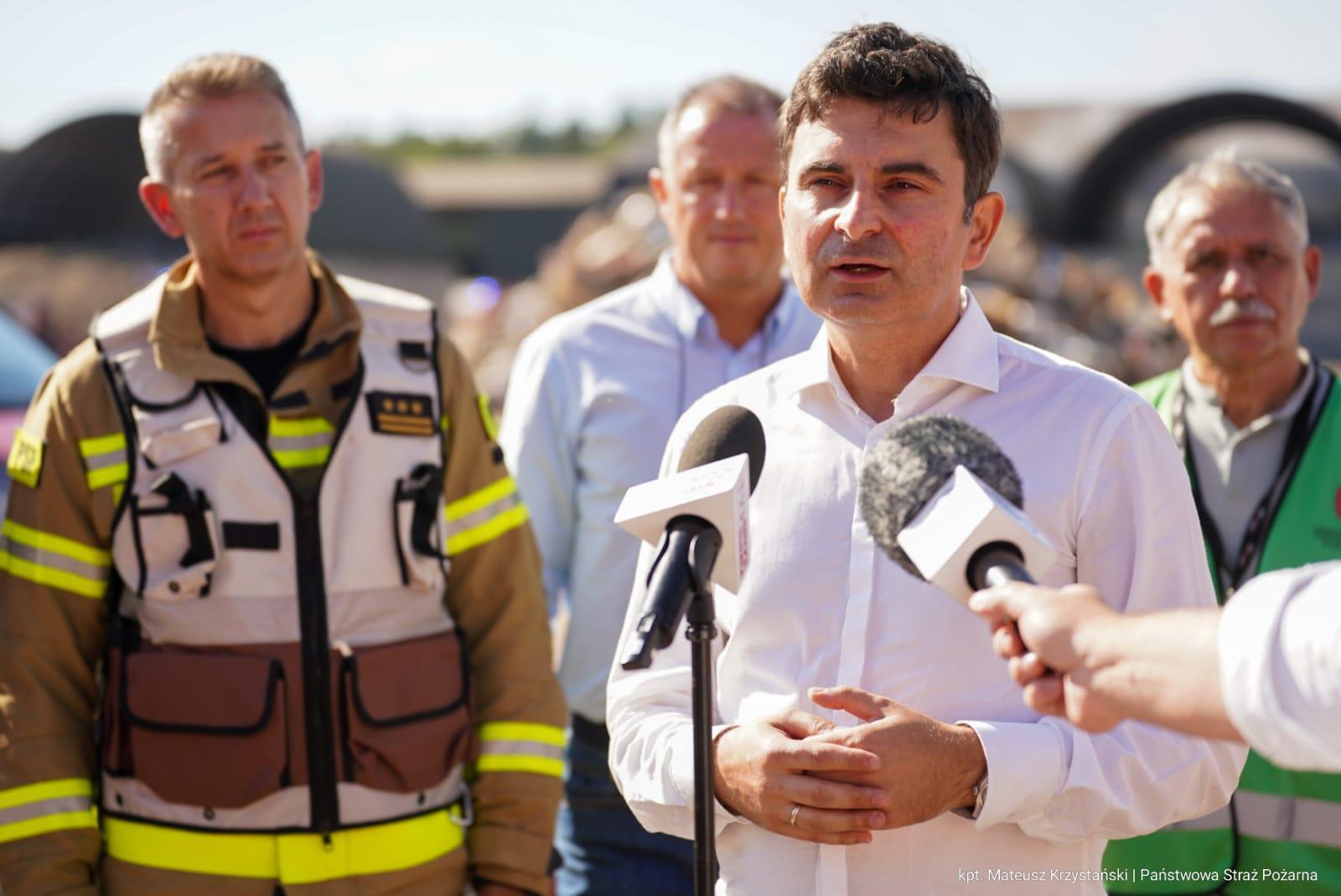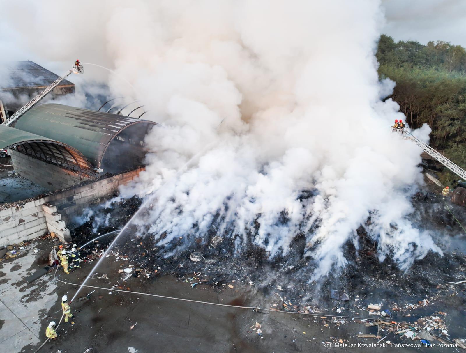 Działania gaśnicze kontynuowane były w dniu 5 września 2024r. Działania prowadzono w środku hali, pomiędzy halą i wiatami oraz na środku placu składowego. Kontynuowano także separowanie tlącego się surowca z usypanych, nadpalonych pryzm przy pomocy ładowarek i przetransportowaniu go w wyznaczone miejsca, a następnie jego przelewaniu oraz dogaszaniu. W czwartek 5 września na miejsce przybył Wojewoda Śląski Pan Marek Wójcik, który w asyście st. bryg. Romana Klechy Zastępcy Śląskiego Komendanta Wojewódzkiego PSP zapoznał się z dotychczasowym przebiegiem działań. Następnie odbył się briefing prasowy z przedstawicielami mediów.
