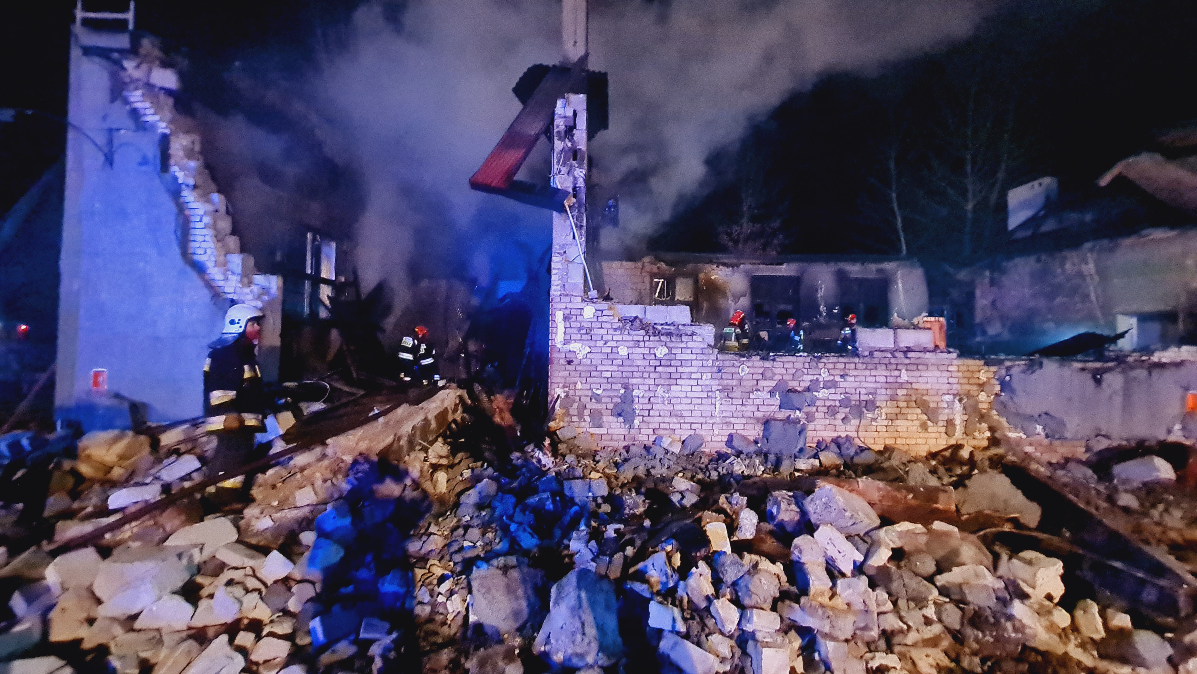 - przeszukaniu rumowiska pod kątem ewentualnych osób poszkodowanych (brak poszkodowanych),