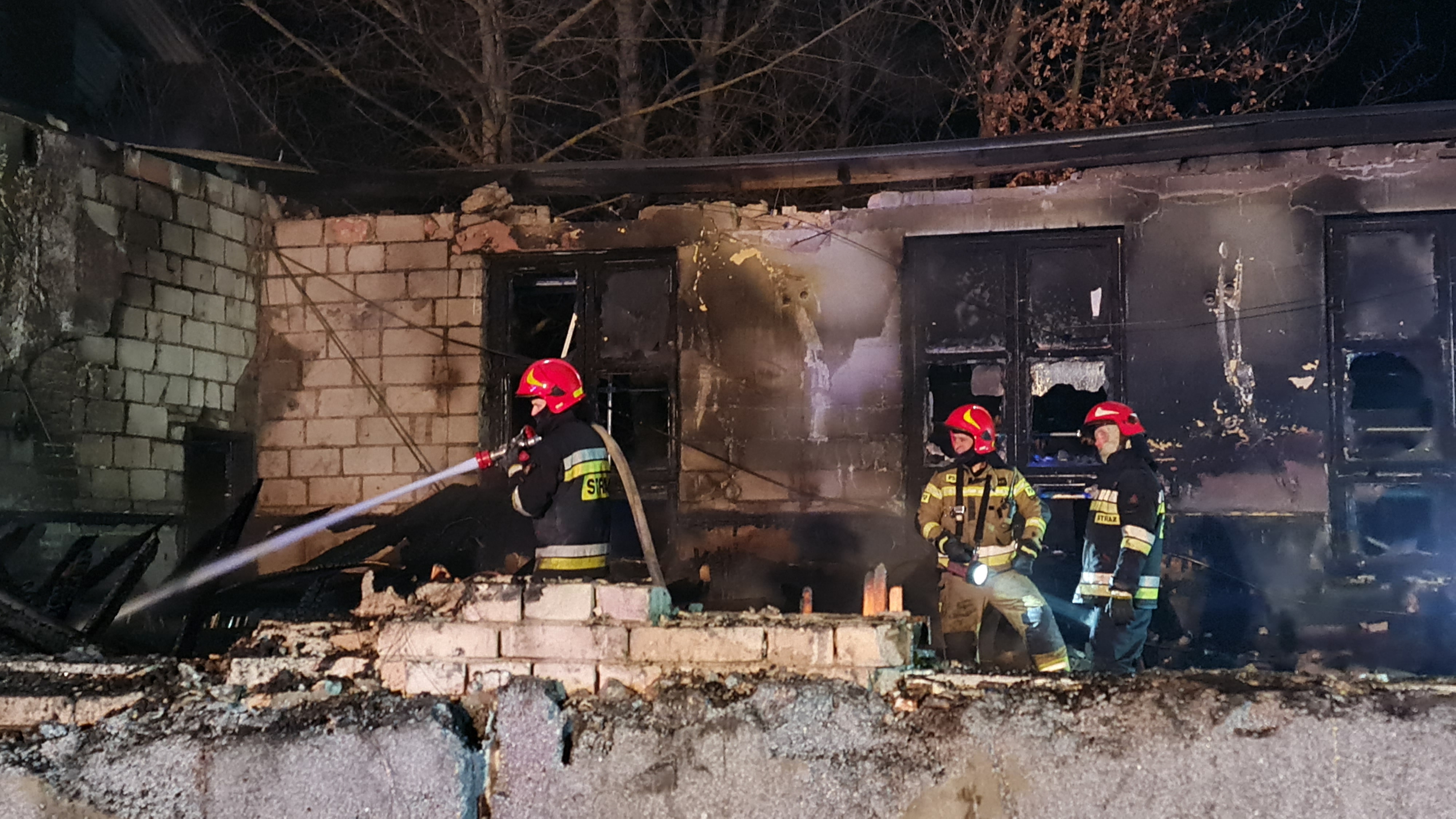 - dogaszeniu i przelaniu pogorzeliska oraz usunięciu zwisających nadpalonych elementów zagrażających bezpieczeństwu przy pomocy drabiny SCD 37,