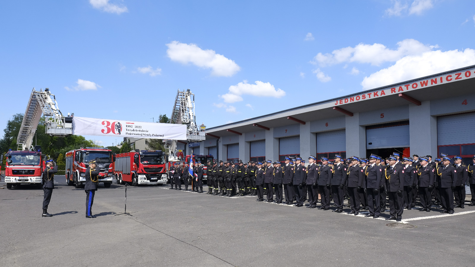 Na koniec uroczystości Śląski Komendant Wojewódzki PSP nadbryg. Jacek Kleszczewski podziękował strażakom za pełnioną służbę oraz złożył gratulacje wszystkim awansowanym i odznaczonym.