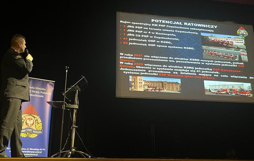 22 marca br. w Miejskim Domu Kultury w Częstochowie odbyło się spotkanie Zastępcy Śląskiego Komendanta Wojewódzkiego Państwowej Straży Pożarnej – koordynatora ds. współpracy PSP i OSP z prezesami i naczelnika jednostek OSP z terenu miasta Częstochowy i powiatu częstochowskiego. Celem spotkania było omówienie Ustawy z dnia 17 grudnia 2021 r. o ochotniczych strażach pożarnych oraz omówienie systemu szkolenia OSP.