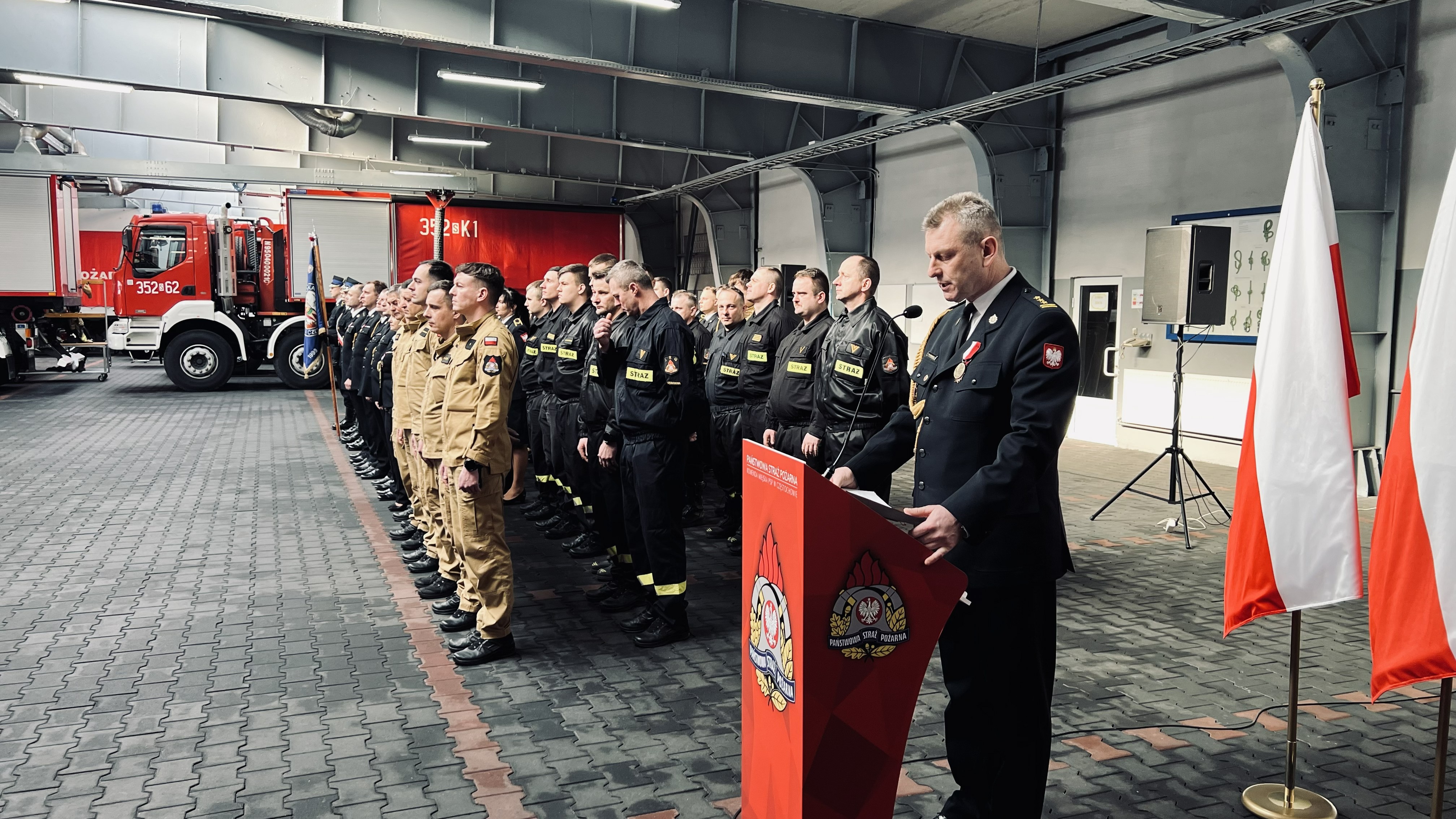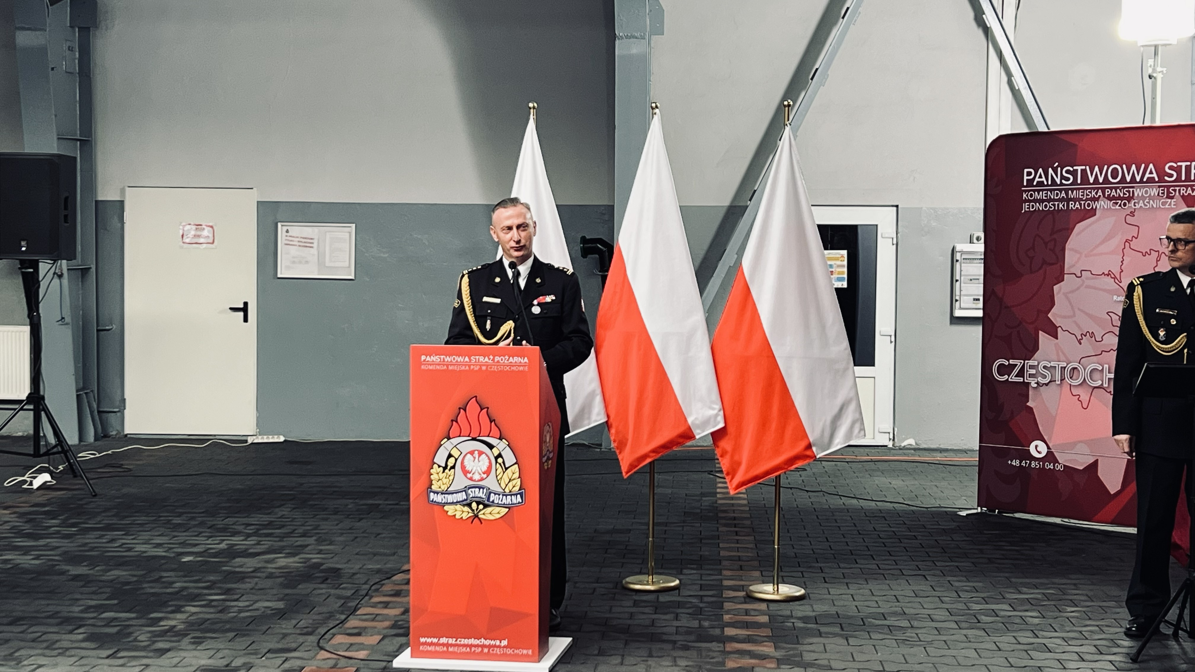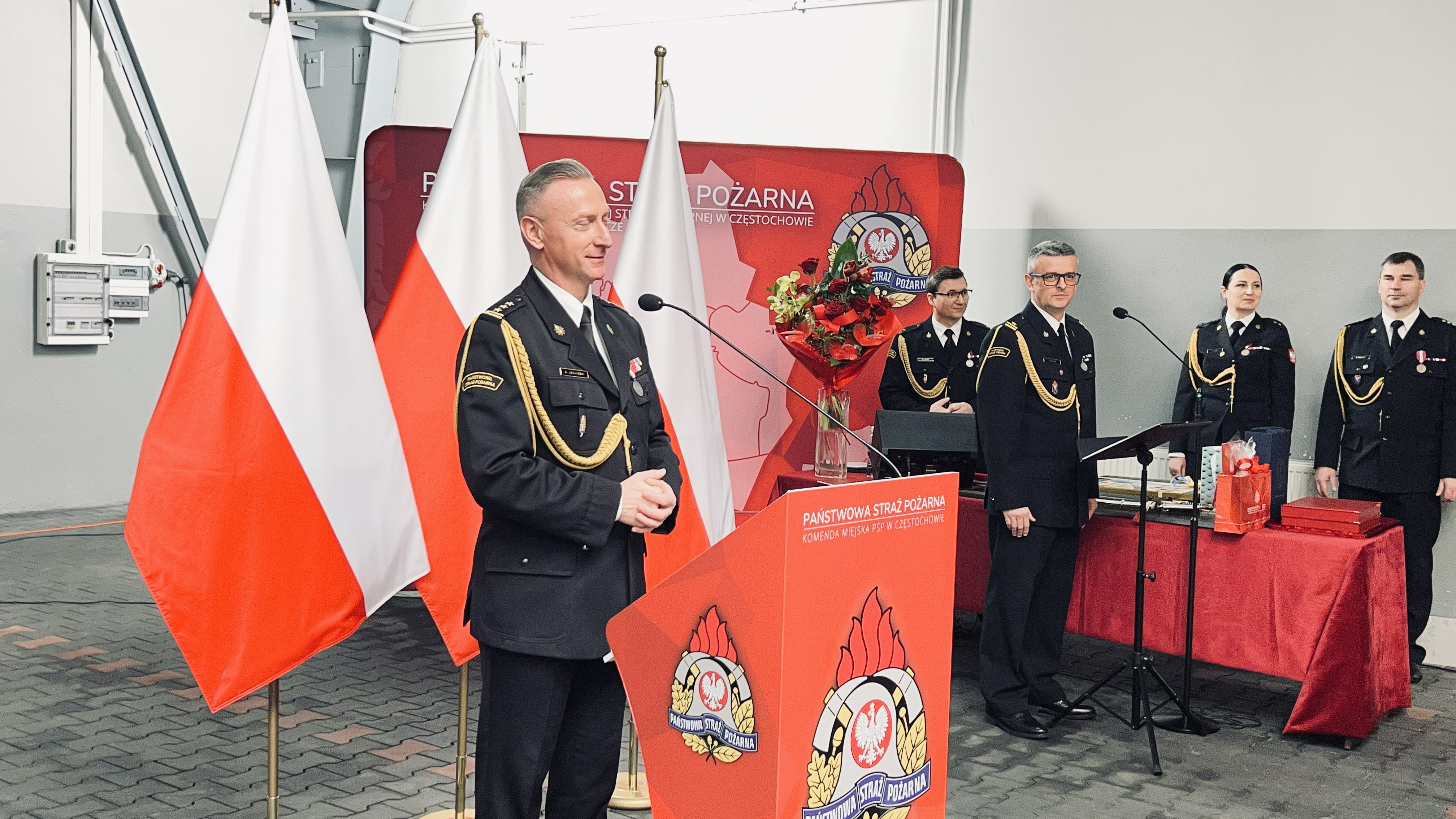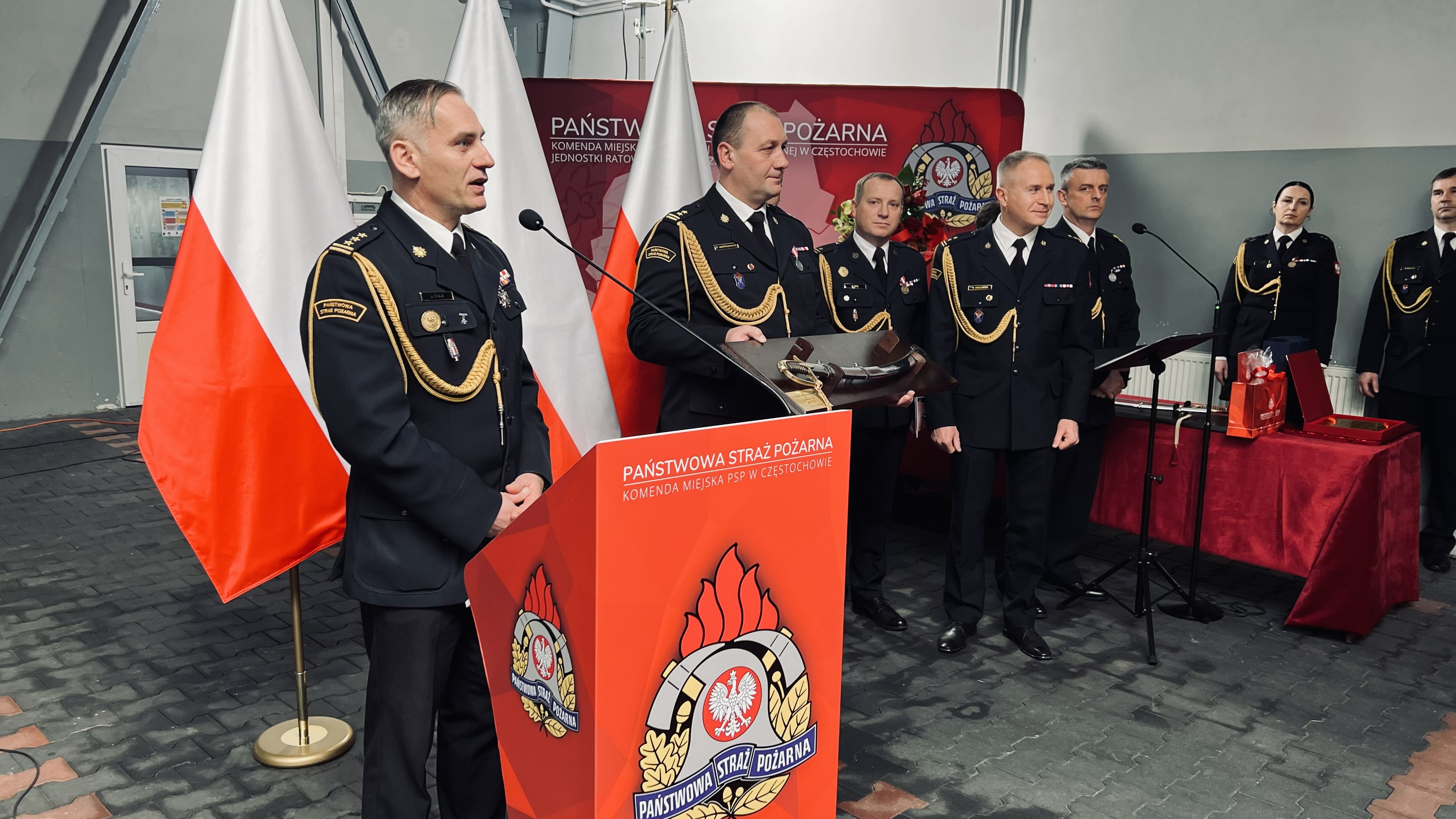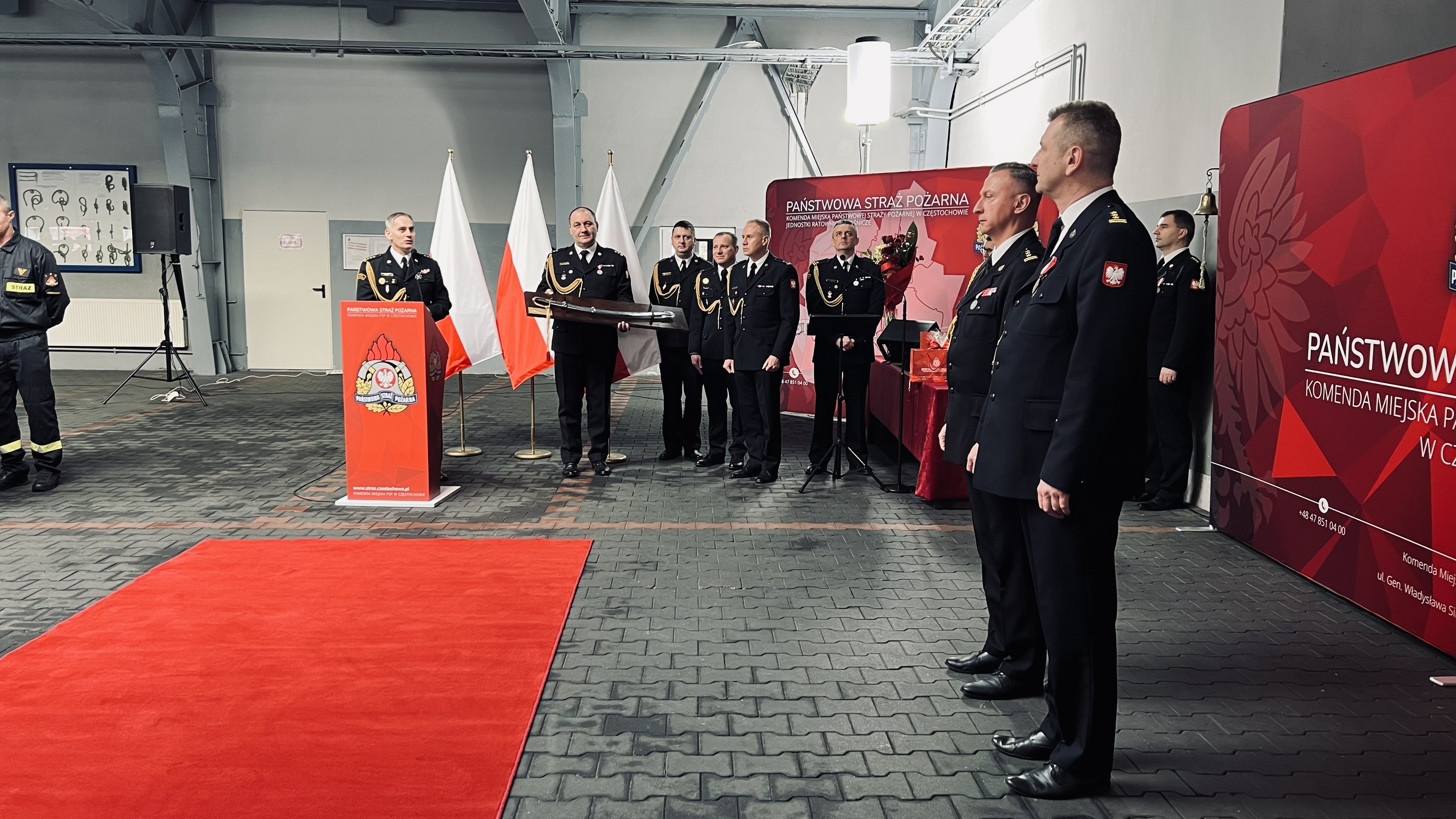 Następnie odczytano decyzje personalne o odwołaniu ze stanowiska Komendanta Miejskiego PSP w Częstochowie oraz o zwolnieniu ze służby w Państwowej Straży Pożarnej.