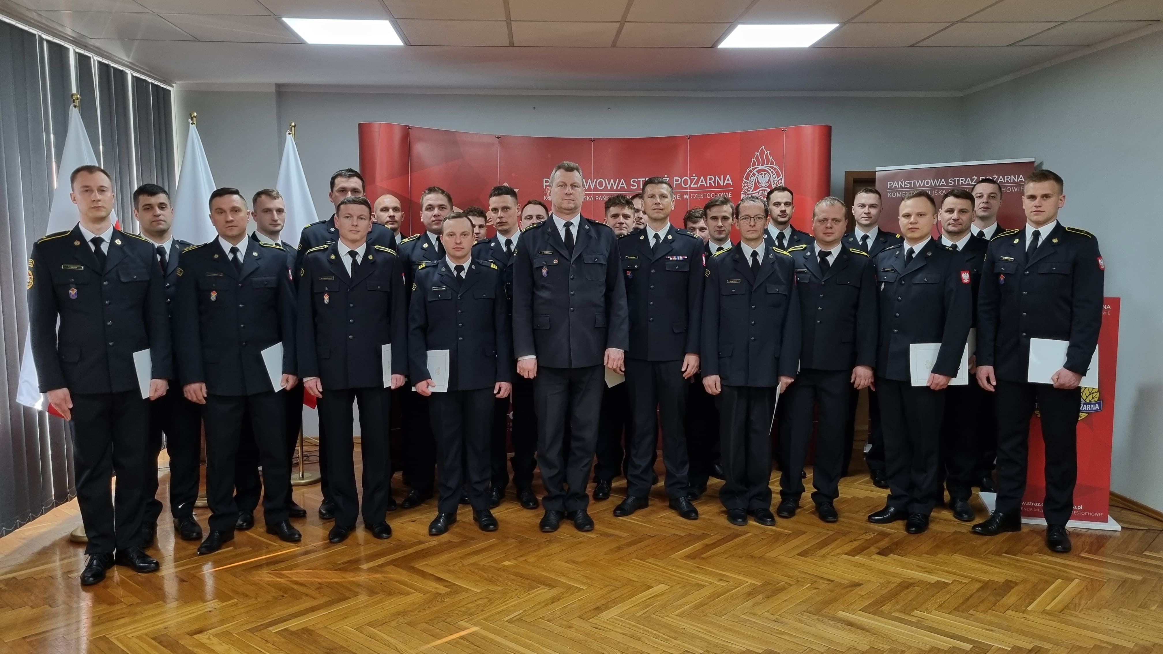 W dniu 10 marca 2025 roku w Komendzie Miejskiej Państwowej Straży Pożarnej w Częstochowie odbyła się uroczysta zbiórka z okazji przeszeregowania na wyższe stanowiska służbowe. Komendant Miejski st. bryg. Marek Radosz wraz z zastępcą bryg. Kamilem Dzwonnikiem pogratulowali awansowanym strażakom, wręczając im akty mianowania.