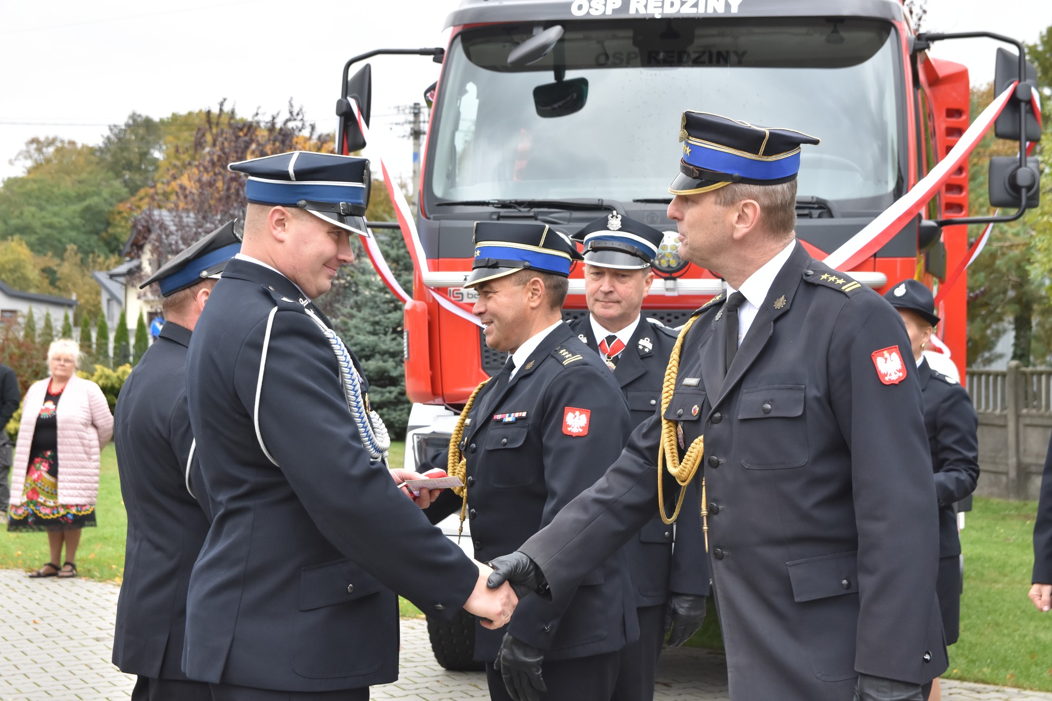 Uroczyste przekazanie nowego samochodu ratowniczo-gaśniczego dla OSP Rędziny