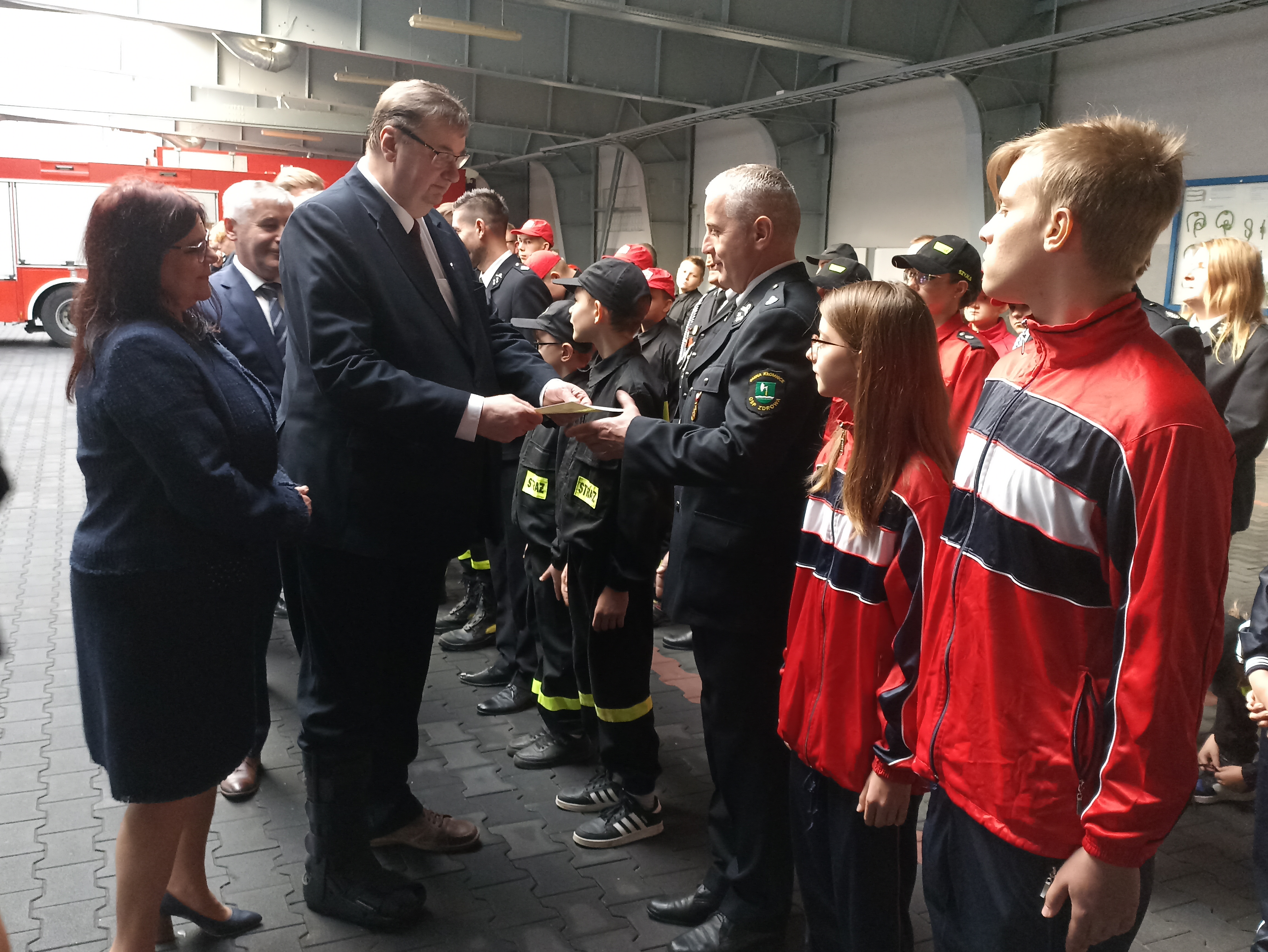 Dzięki dotacji jeszcze w tym roku Młodzieżowe Drużyny Pożarnicze będą mogły przeznaczyć dodatkowe środki na sprzęt do przeprowadzania zawodów sportowo-pożarniczych, umundurowanie i wyposażenie osobiste dla członków MDP oraz sprzęt teleinformatyczny wykorzystywany w procesie szkolenia. W uroczystości udział wzięli: