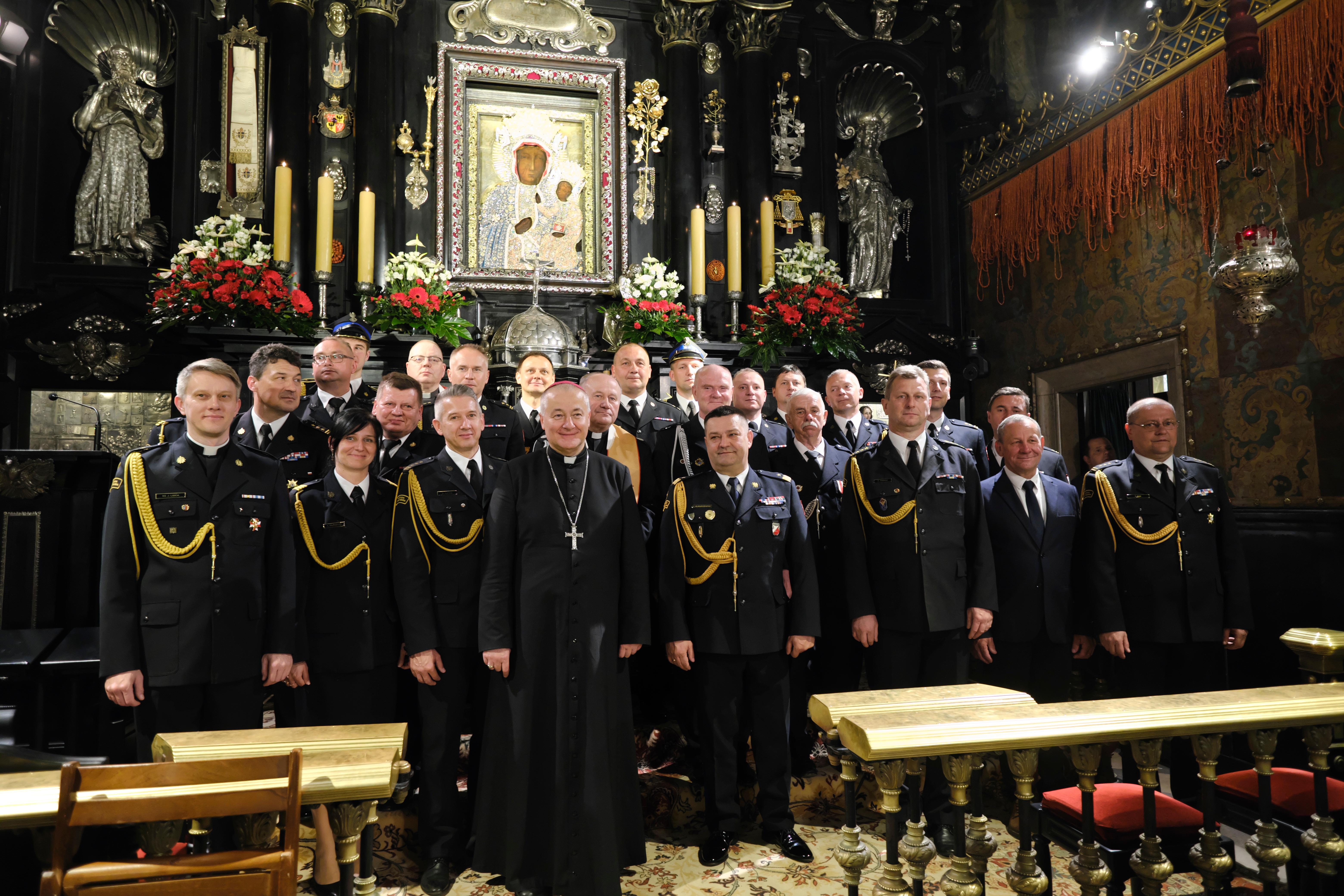 Pod przewodnictwem mł. kpt. ks. dr Jarosława Lisica - kapelana Komendy Wojewódzkiej Państwowej Straży Pożarnej w Gdańsku, w tym szczególnym dniu św. Floriana patrona strażaków, w modlitwie apelowej na Jasnej Górze, udział wzięli:
