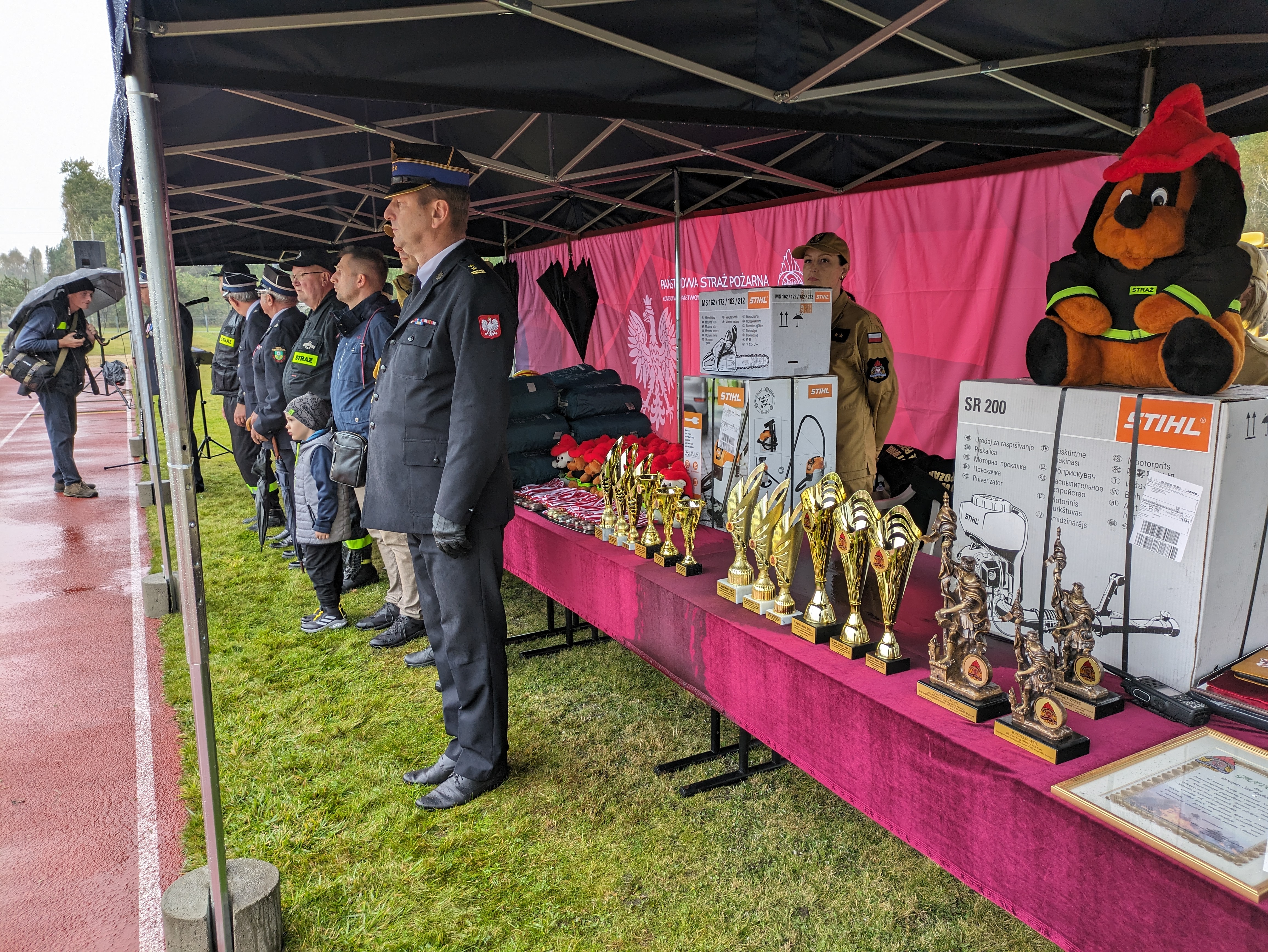Ponadto podczas zawodów swe umiejętności zaprezentowała drużyna "Strażusi". Maluszki z jednostki OSP Słowik w gminie Poczesna pokazały wszystkim zebranym musztrę pożarniczą oraz krótkie założenie pożarnicze.