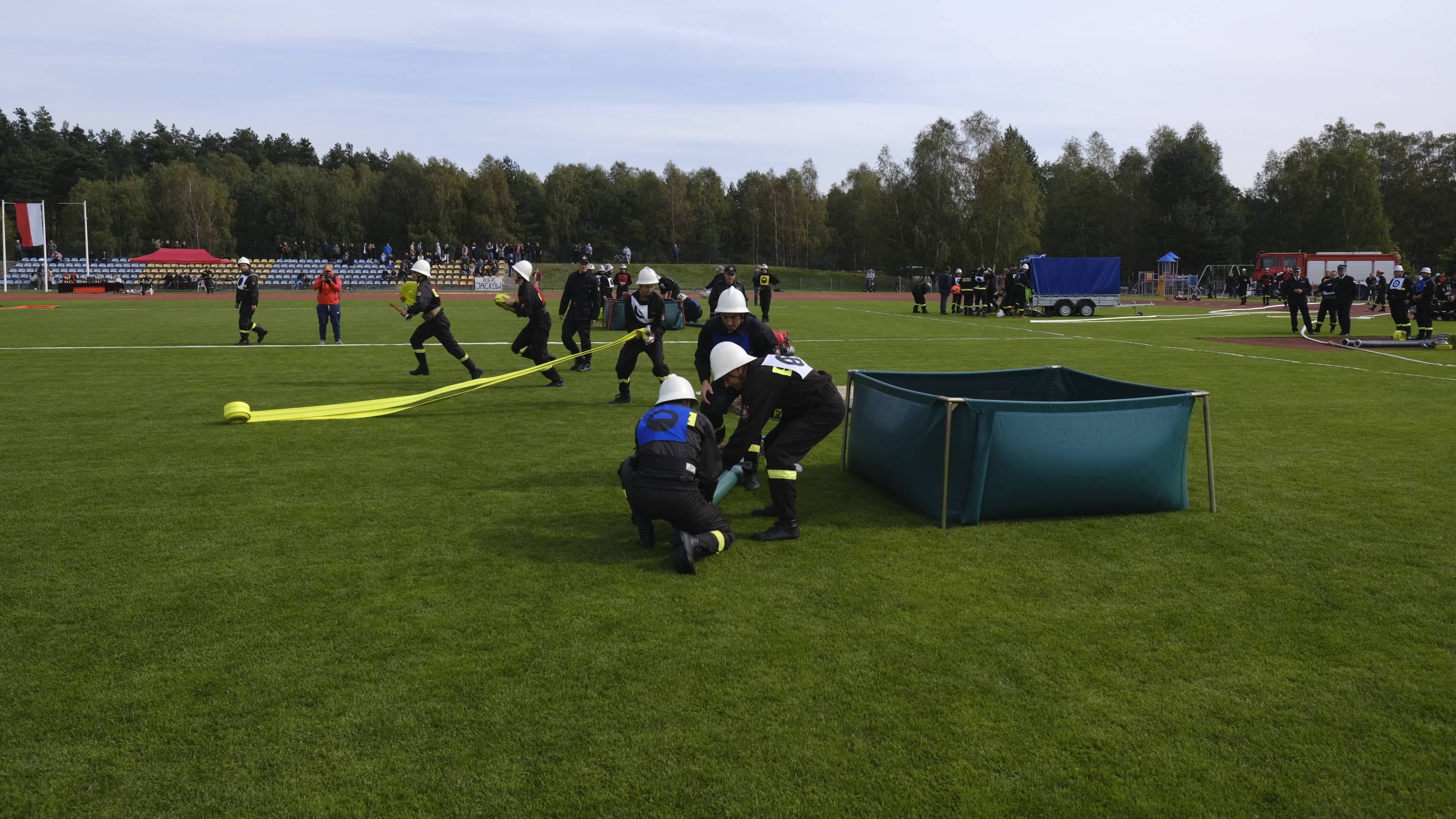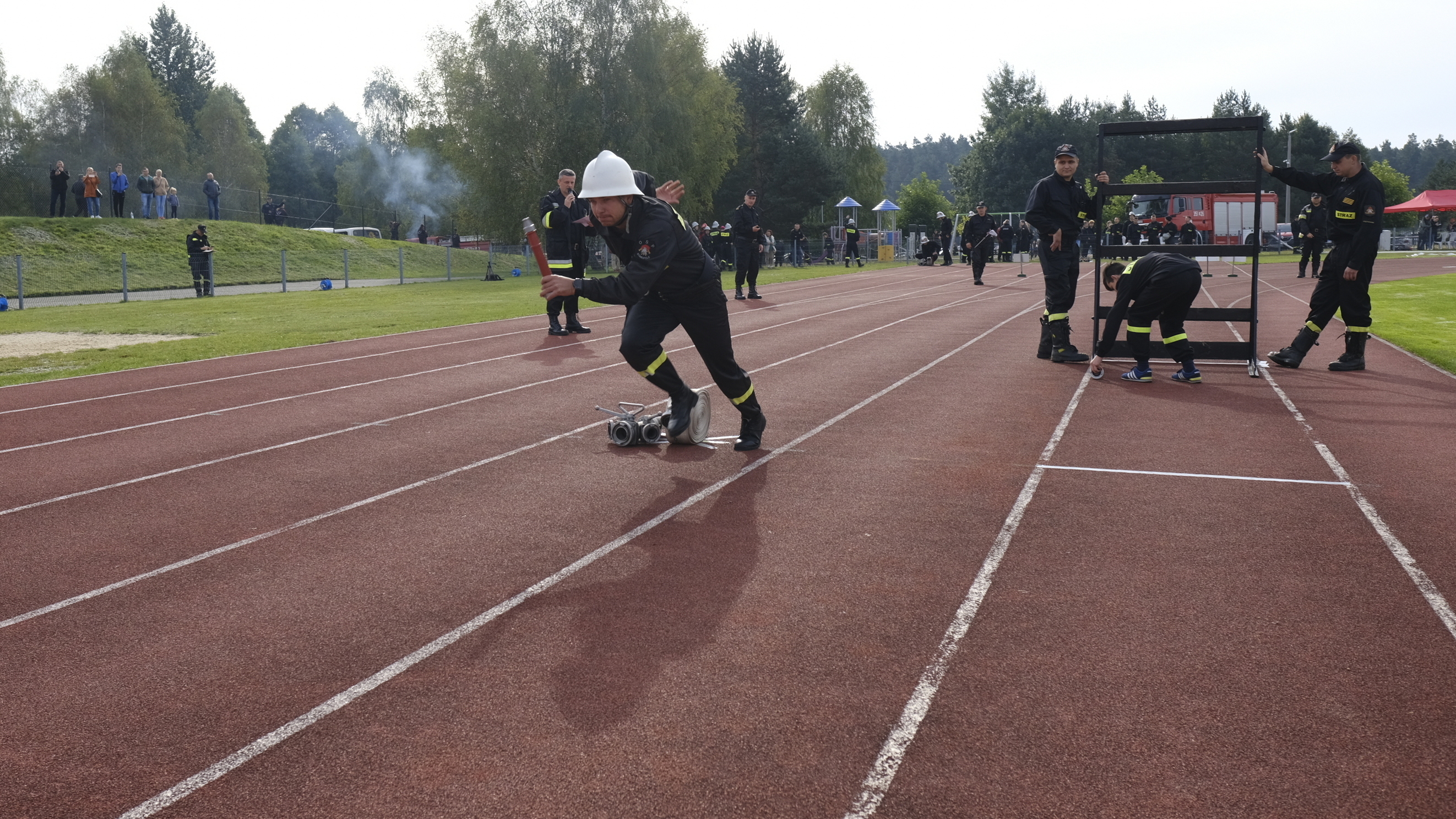 Ponadto podczas zawodów swe umiejętności zaprezentowała drużyna "Strażusi". Maluszki z jednostki OSP Słowik w gminie Poczesna pokazały wszystkim zebranym musztrę pożarniczą oraz krótkie założenie pożarnicze.