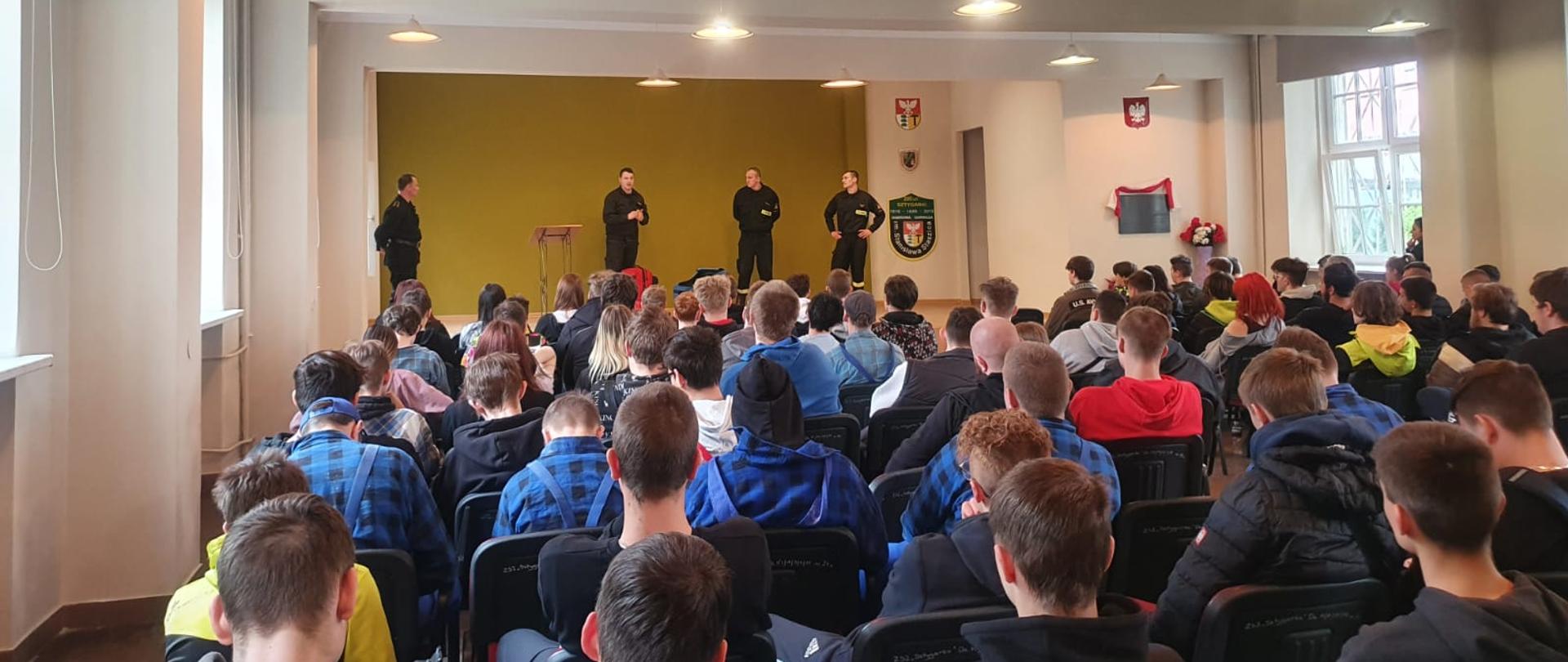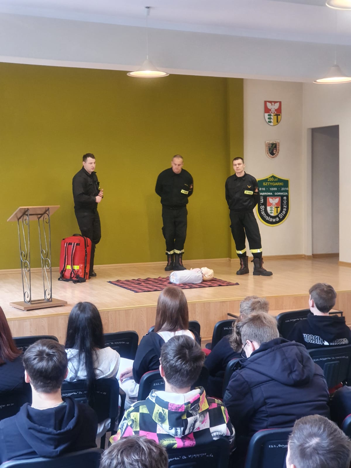 W dniu 26.04.2022 r. w Zespole Szkół Zawodowych „Sztygarka” w Dąbrowie Górniczej odbyło się spotkanie funkcjonariuszy Państwowej Straży Pożarnej z młodzieżą, którego tematem przewodnim było „Bezpieczne zachowanie w szkole, w domu, na ulicy”. Spotkanie połączone było z instruktażem pierwszej pomocy przedmedycznej.