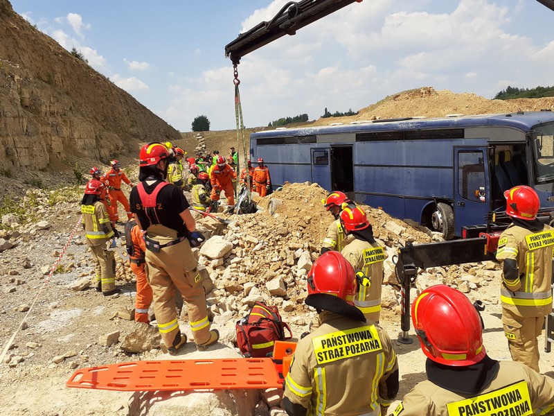 W dniu 28.06.2021 roku na terenie Kopalni Dolomitu w Dąbrowie Górniczej odbyły się ćwiczenia Centralnego Odwodu Operacyjnego dla Specjalistycznych Grup Ratownictwa Technicznego oraz Specjalistycznych Grup Poszukiwawczo – Ratowniczych. Ćwiczenia organizowane były na podstawie Rozkazu Śląskiego Komendanta Wojewódzkiego Państwowej Straży Pożarnej w Katowicach. Tematem ćwiczeń były działania związane z katastrofą budowlaną i miały one na celu sprawdzenie wiedzy oraz doskonalenie umiejętności strażaków Państwowej Straży Pożarnej wchodzących w skład poszczególnych grup, które w nich uczestniczyły.