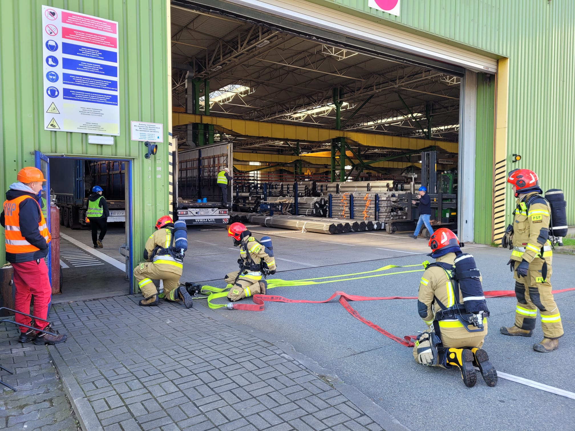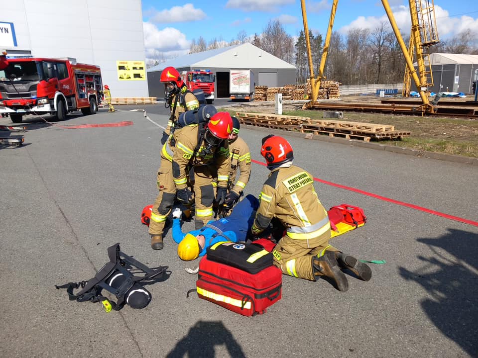 Ćwiczenia dąbrowskich strażaków na obiekcie Thyssenkrupp Materials Poland S.A.