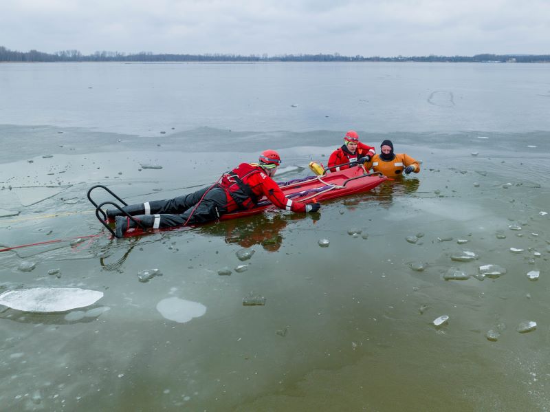 Ćwiczenia doskonalące z zakresu ratownictwa lodowego na zbiorniku wodnym "POGORIA III"