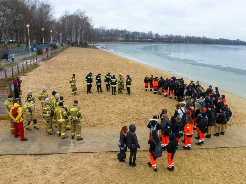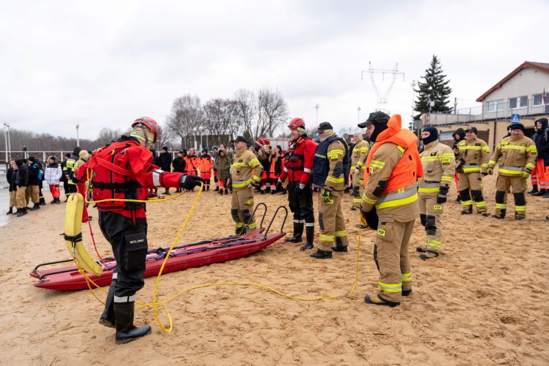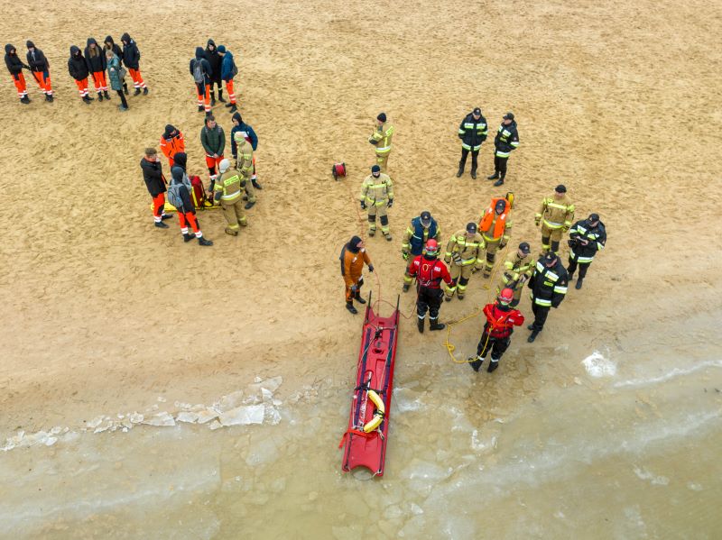 Ostatnim etapem ćwiczeń było wdrożenie odpowiednich procedur z zakresu kwalifikowanej pierwszej pomocy jeszcze przed przyjazdem zespołu ratownictwa medycznego, z uwzględnieniem niebezpieczeństw związanych z przebywaniem w zimnej wodzie, skutków tonięcia i hipotermii. Powyższe zajęcia są niezwykle przydatne do wypracowania prawidłowej konfiguracji sprzętu i wyposażenia ratownika oraz wykorzystania odpowiedniej taktyki działań adekwatnej do zastanej sytuacji na miejscu zdarzenia podczas rzeczywistych działań.