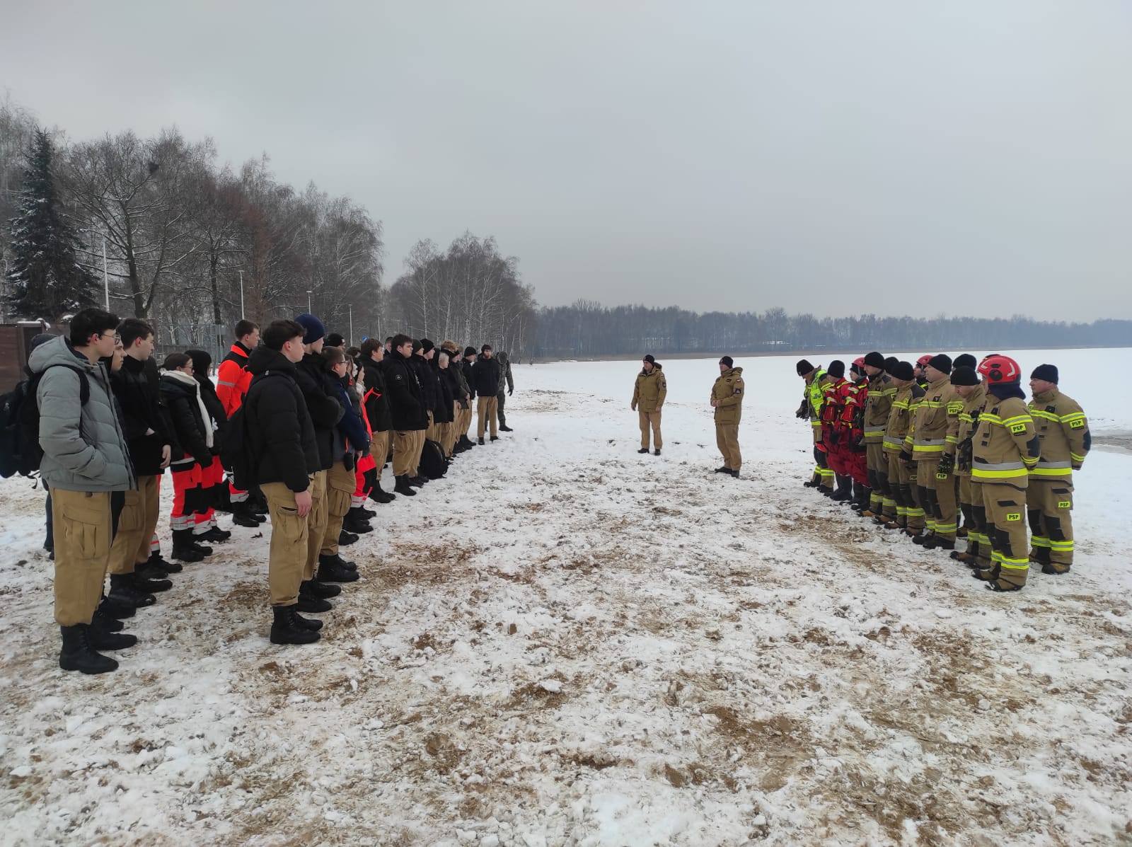 Obserwatorami ćwiczeń byli uczniowie klas mundurowych III Liceum Ogólnokształcącego im. gen. Władysława Andersa w Dąbrowie Górniczej, którzy mieli możliwość zapoznania się z zasadami prowadzenia działań ratowniczych z użyciem specjalistycznego sprzętu oraz z podstawowymi zasadami bezpieczeństwa obowiązującymi na zamarzniętych akwenach.
