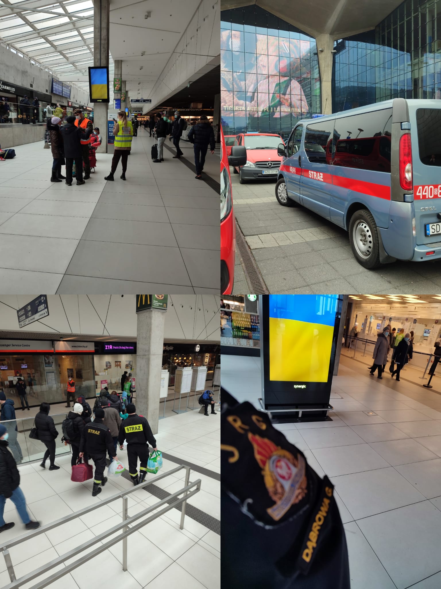 W dniu dzisiejszym strażacy pełniący służbę w Komendzie Miejskiej Państwowej Straży Pożarnej w Dąbrowie Górniczej brali czynny udział w akcji niesienia pomocy uchodźcą z ogarniętej wojną Ukrainy, jaka odbywała się na terenie naszego województwa.