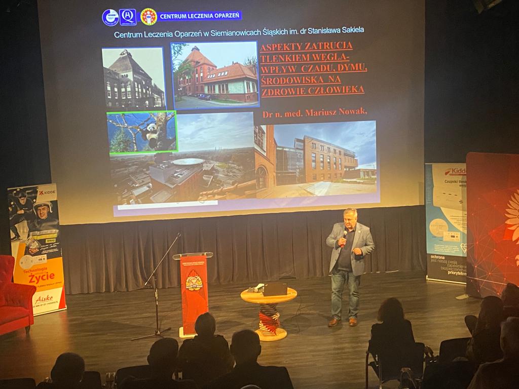 Dyrektor Szpitala Centrum Leczenia Oparzeń w Siemianowicach Śląskich Pan dr. n. med. Mariusz Nowak, omówił leczenie osób poszkodowanych w wyniku zatrucia tlenkiem węgla i możliwości wykorzystania w tym celu komory hiperbarycznej. Jako ostatni z prelegentów zabrał głos przedstawiciel firmy AISCO- wyłączny przedstawiciel firmy KIDDE Pan Norbert Jackowicz.