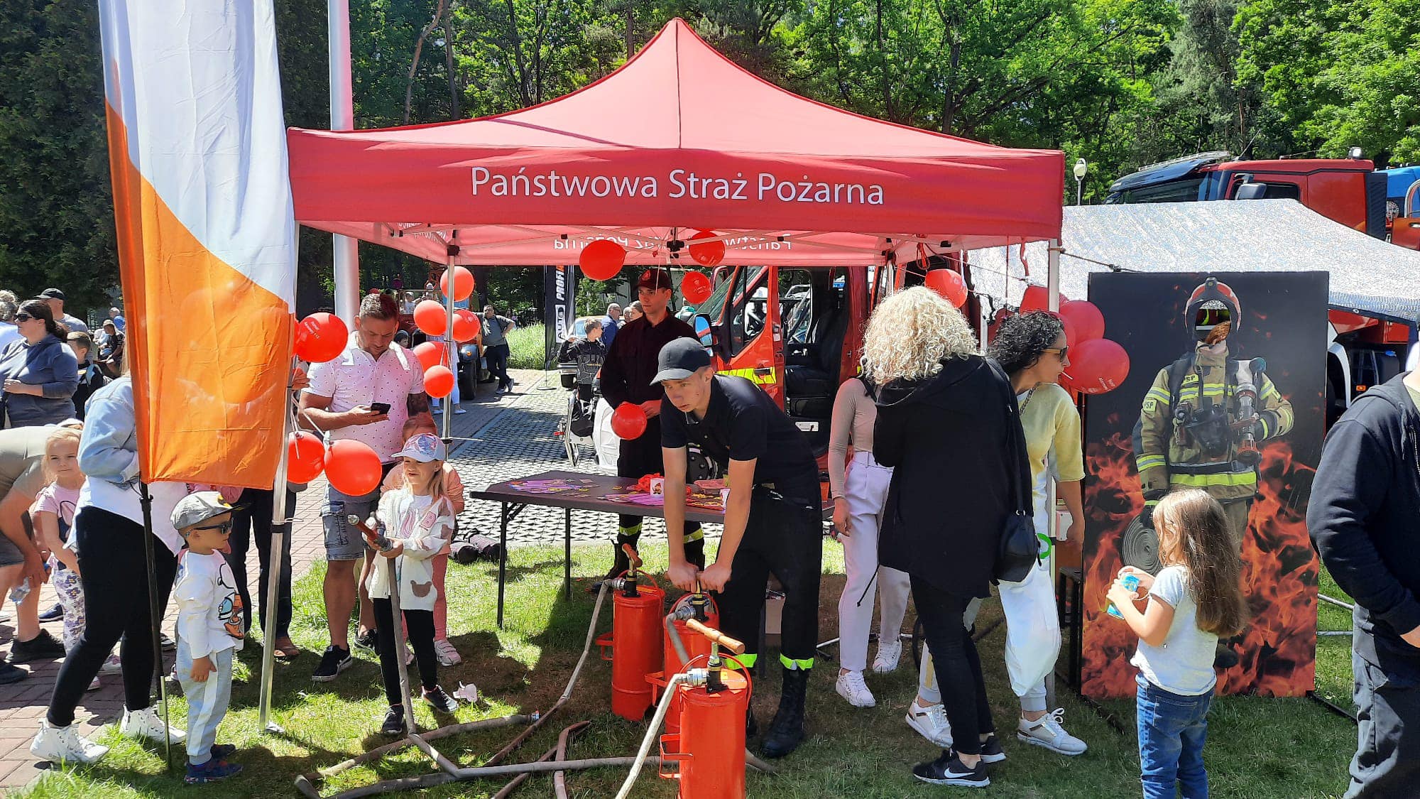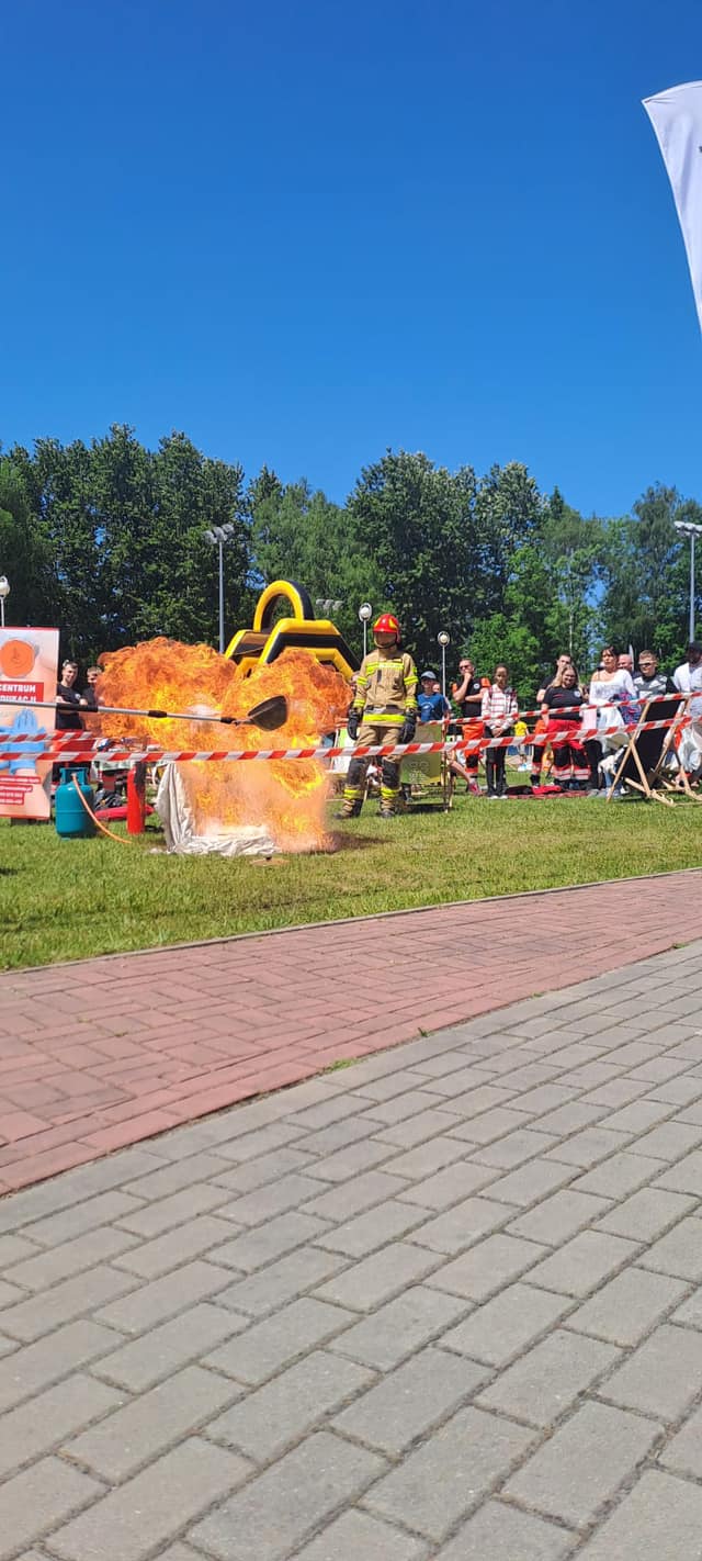 Wielokolorowe namioty i stoiska z różnymi atrakcjami rozlokowane były na terenie parku, tworząc barwną i przyjazną atmosferę. Piknik był doskonałą okazją do edukacji dzieci w zakresie bezpieczeństwa. Policjanci, strażacy i ratownicy medyczni prowadzili warsztaty, na których przekazywali ważne informacje na temat ochrony przed zagrożeniami oraz udzielania pierwszej pomocy. Strażacy w ramach swojego stoiska, zaprezentowali w jaki sposób nie należy gasić płonącej patelni z olejem i jaki efekt daje zalanie jej zimną wodą.