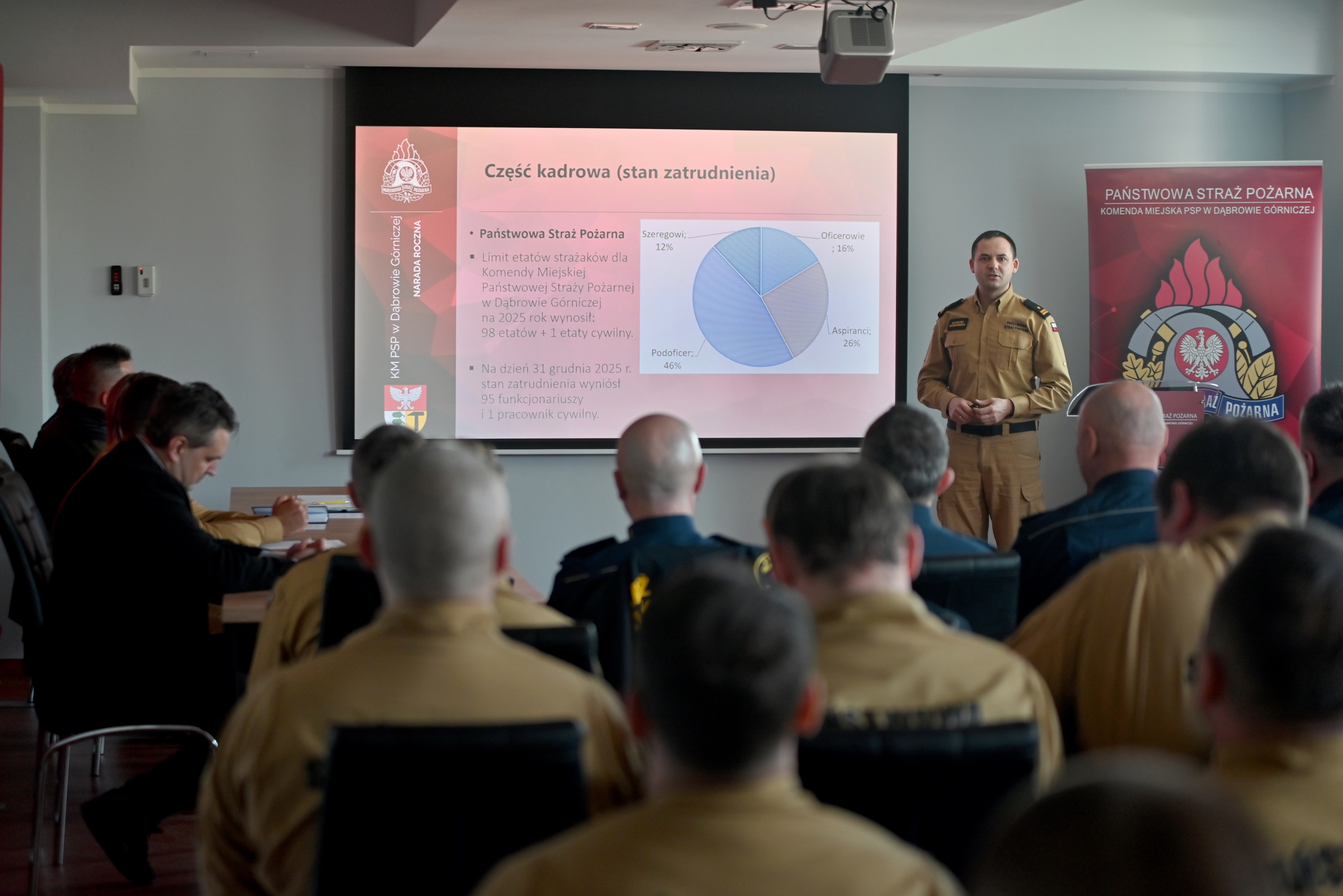 11 marca 2026 roku w Komendzie Miejskiej Państwowej Straży Pożarnej w Dąbrowie Górniczej odbyła się narada podsumowująca działalność komendy w 2025 roku, połączona z posiedzeniem Komisji Bezpieczeństwa i Porządku w Dąbrowie Górniczej.