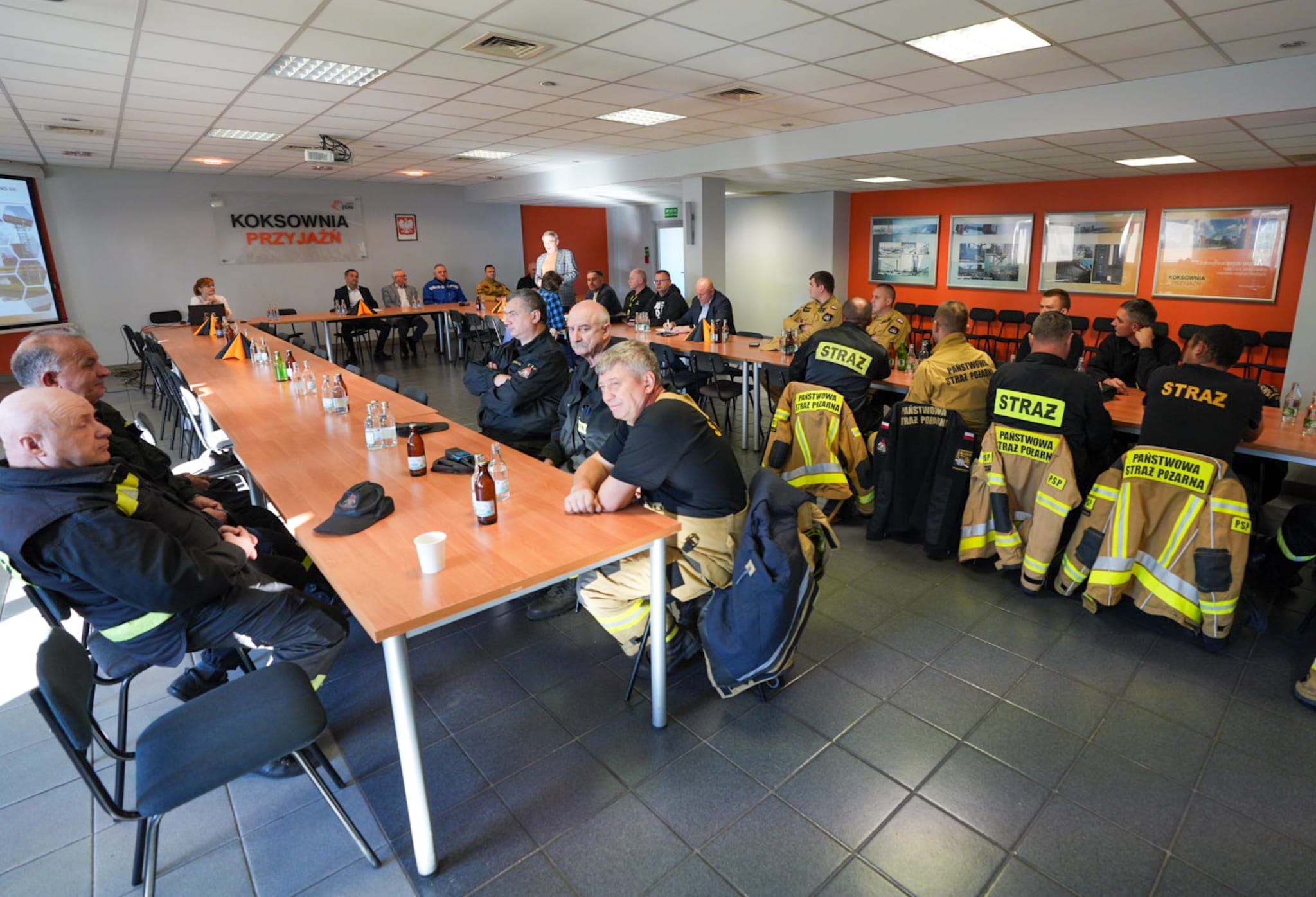 JSW Koks S.A. Koksownia ‘’Przyjaźń" jest jednym z zakładów dużego ryzyka, działającym na terenie miasta Dąbrowa Górnicza. Zakład został zakwalifikowany do tej kategorii za sprawą ilości magazynowanych substancji niebezpiecznych, w tym benzolu surowego. Strażacy zostali zapoznani z dokładną charakterystyką tej substancji, która jest powszechnie stosowana w koksownictwie. Wiedza na temat właściwości benzolu jest niezbędna podczas działań ratowniczo-gaśniczych na terenie zakładów gdzie występuje w dużych ilościach, dlatego poświęcono jej wiele uwagi podczas tegorocznych ćwiczeń.