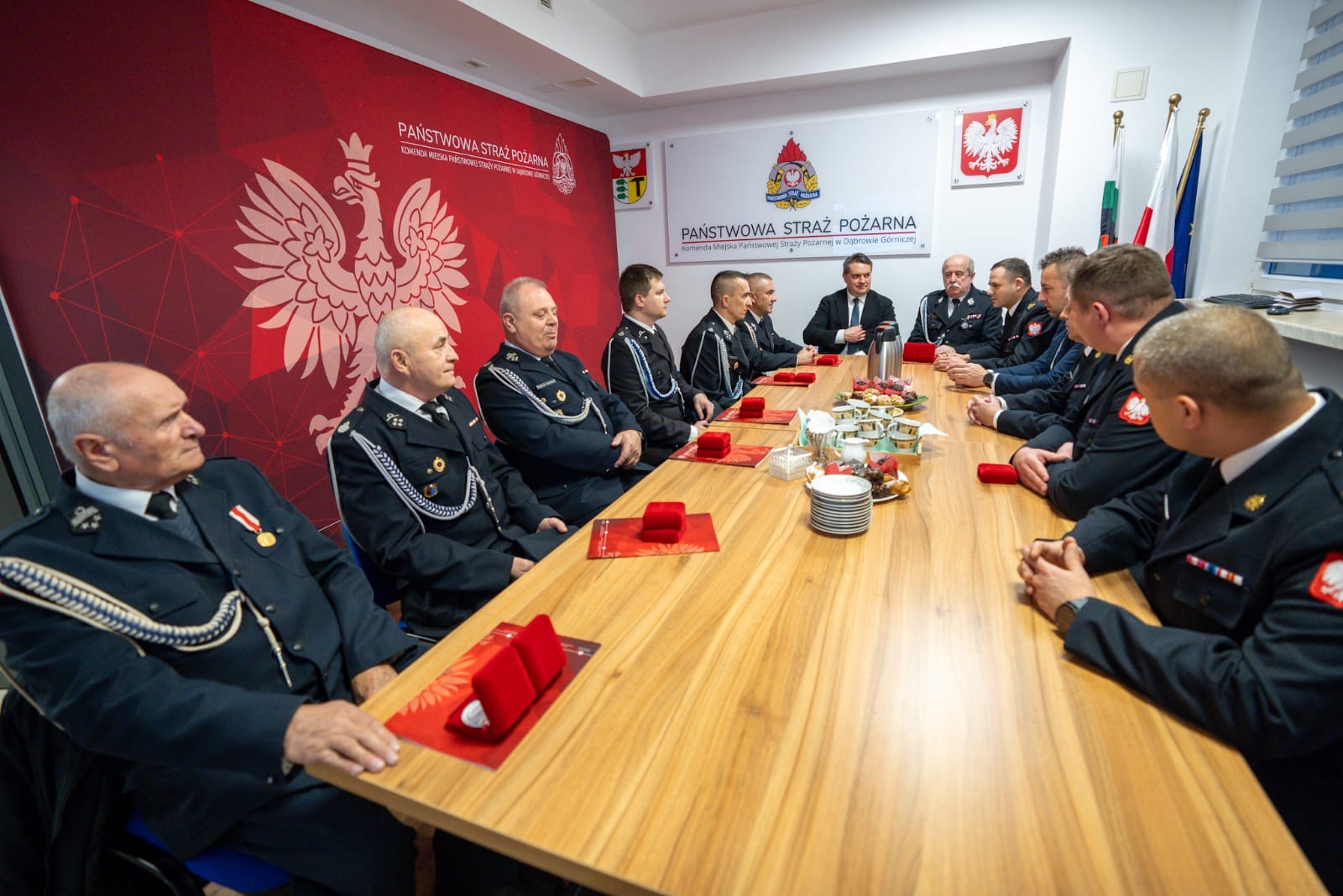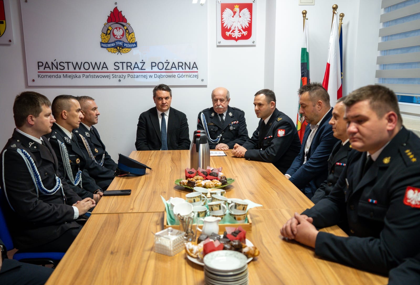 02.12.2025 r. w Komendzie Miejskiej PSP w Dąbrowie Górniczej odbyło się spotkanie Komendanta Miejskiego PSP w DG mł. bryg. Mariusza Rozenberga z prezesami jednostek OSP z terenu Dąbrowy Górniczej.