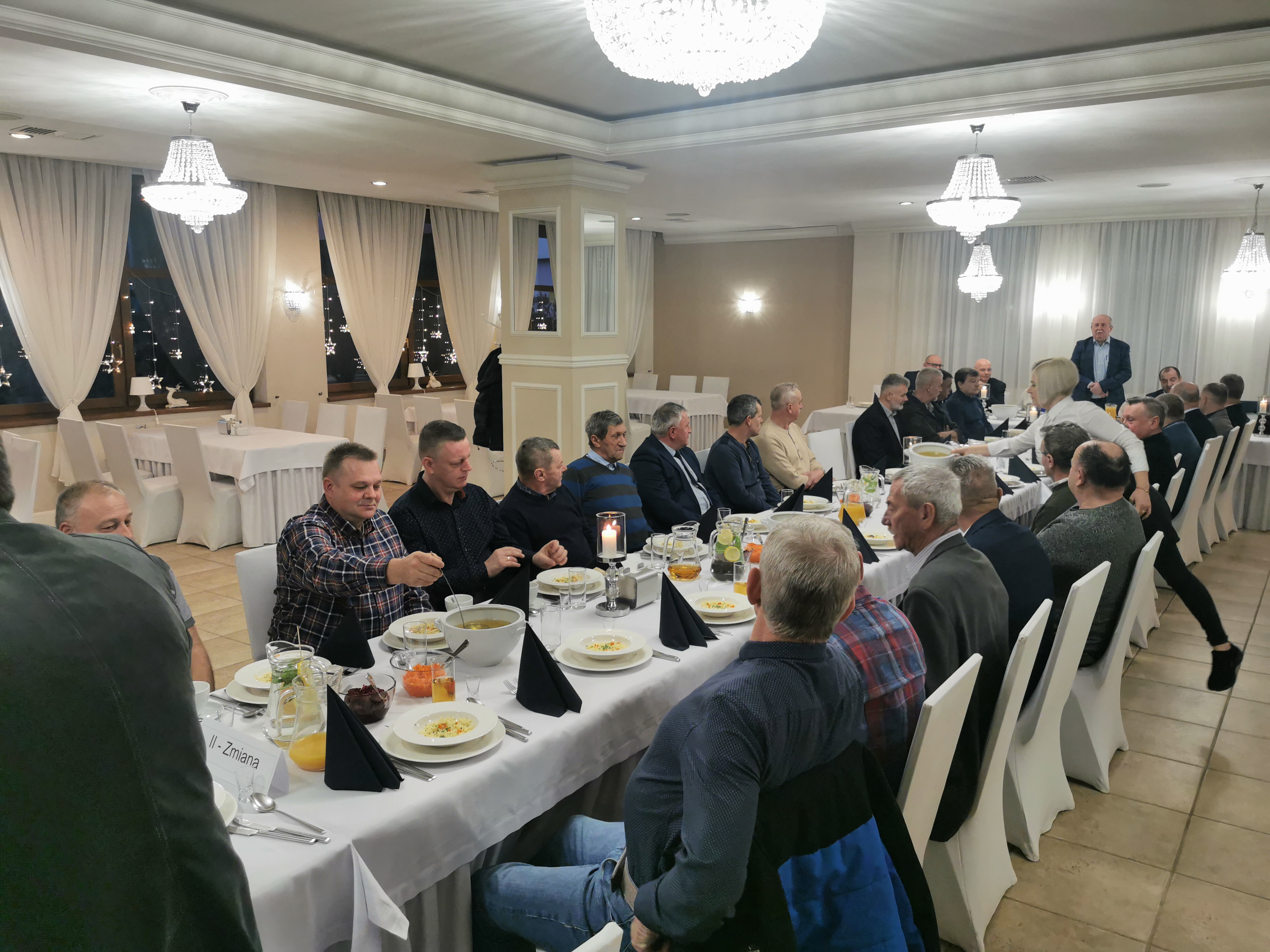 Po krótkiej przerwie, Prezes Robert Kulej otwierając oficjalnie spotkanie towarzyskie, przekazał m.in. życzenia od Prezesa Zarządu Wojewódzkiego ZEiR RP Kol. Romana Szłapy a następnie przywitał zaproszonego gościa, w osobie bryg. Łukasza Musialika, Z-cy Komendanta Miejskiego PSP w DG, który w trakcie swojego wystąpienia złożył wszystkim obecnym życzenia noworoczne. Dalsza część upłynęła w wesołej i miłej atmosferze.
