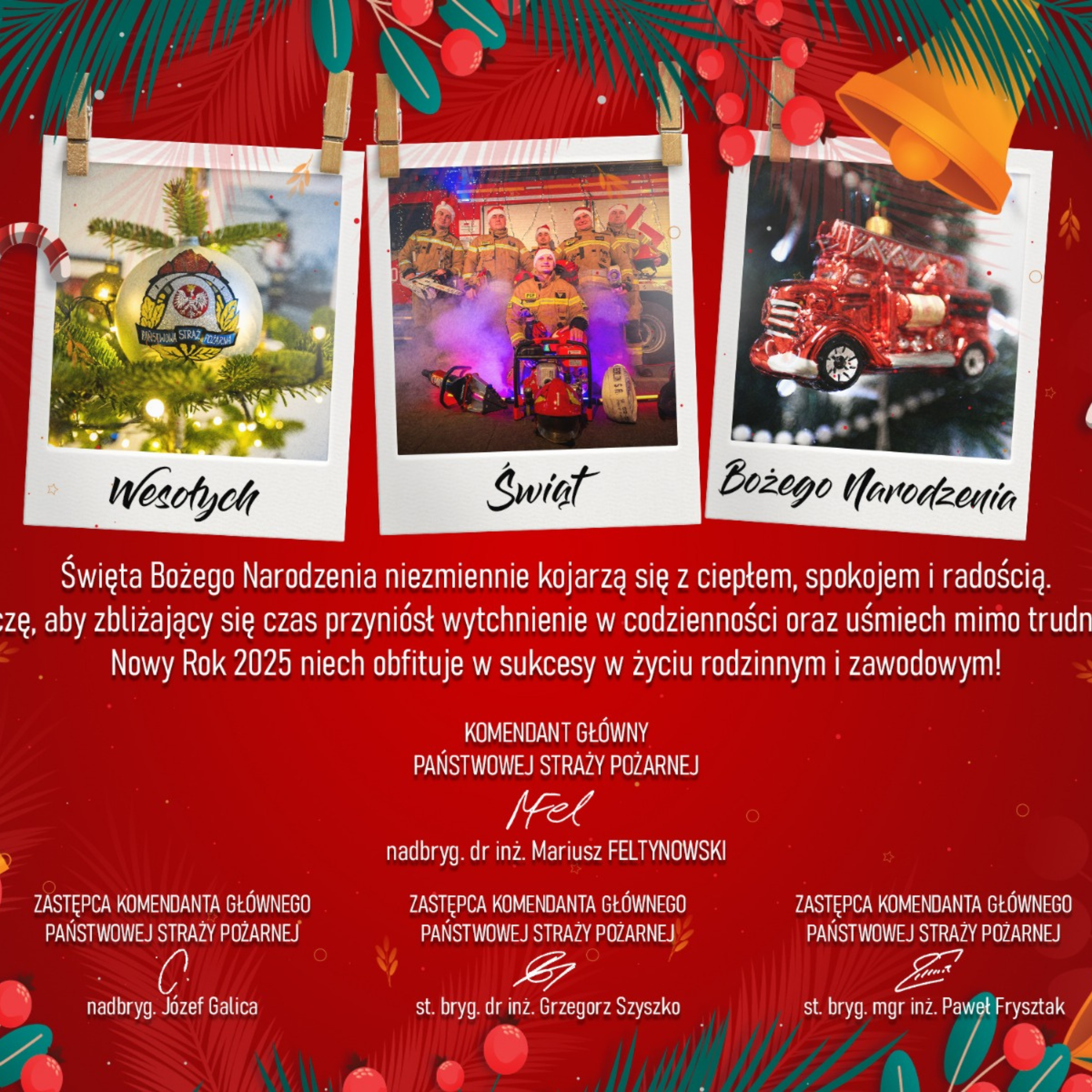 Świąteczne życzenia kierownictwa Komendy Głównej Państwowej Straży Pożarnej.