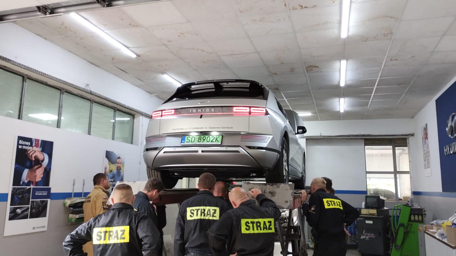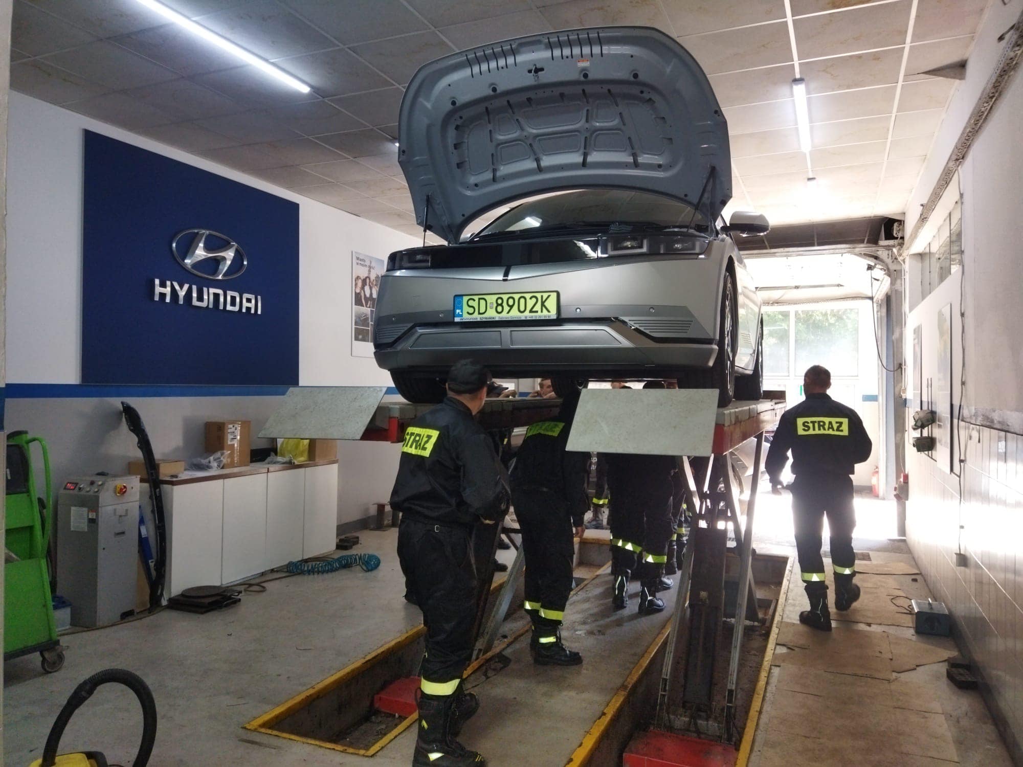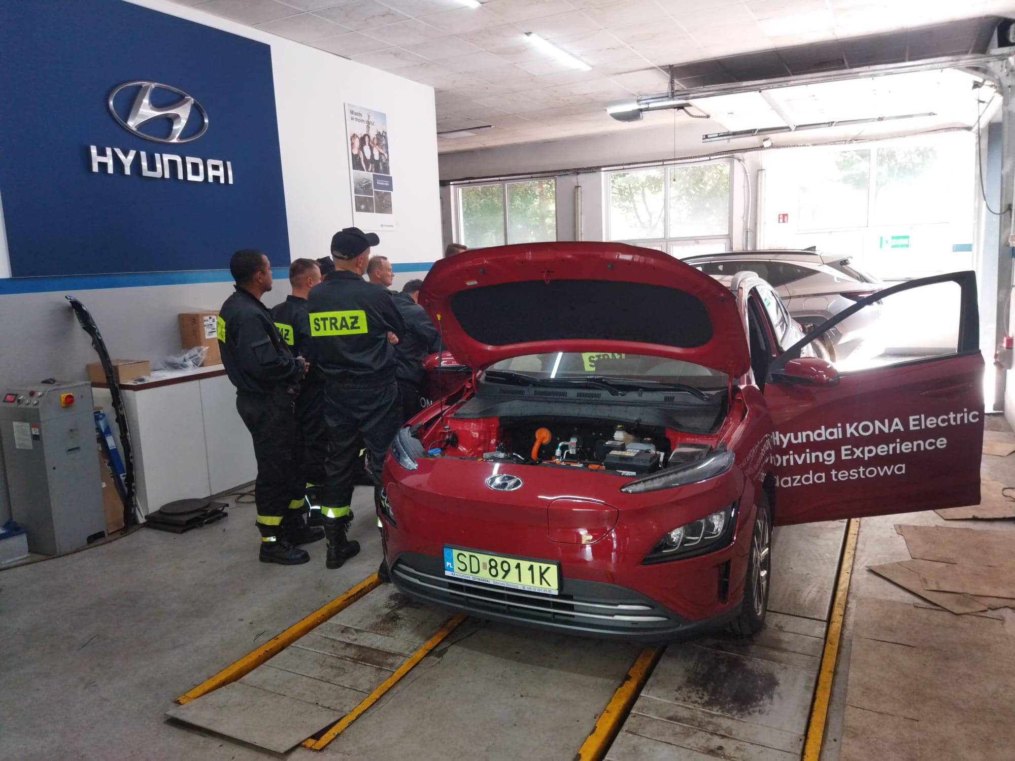 Szkolenie zostało zorganizowane przez „Szymański - Autoryzowany Dealer Hyundai” w Dąbrowie Górniczej i miało na celu zapoznanie się budową samochodów elektrycznych oraz z nowymi zagrożeniami z jakimi mogą spotkać się strażacy, podczas zdarzeń drogowych i pożarów z udziałem tego typu pojazdów.