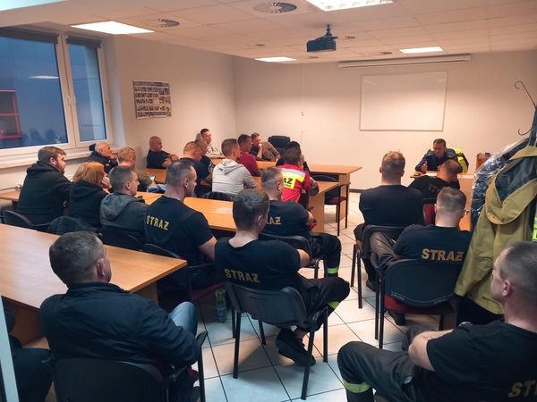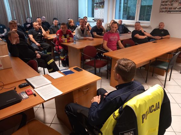 W dniach 17-19 października 2023 roku w Komendzie Miejskiej Państwowej Straży Pożarnej w Dąbrowie Górniczej, przedstawiciel Wydziału Ruchu Drogowego Komendy Miejskiej Policji w Dąbrowie Górniczej przeprowadził szkolenie z zakresu poruszania się pojazdami uprzywilejowanymi, podczas którego przybliżył obowiązujące w tym zakresie przepisy.