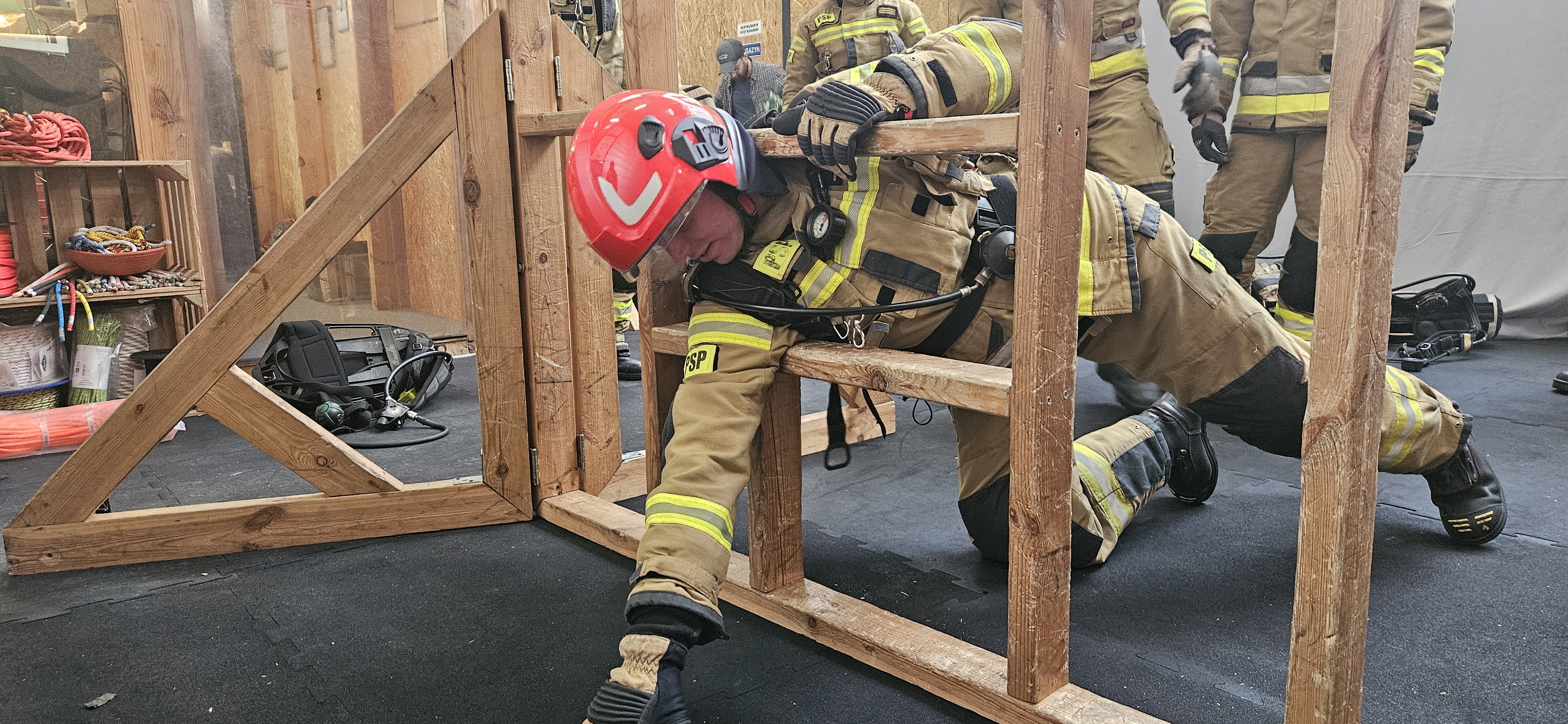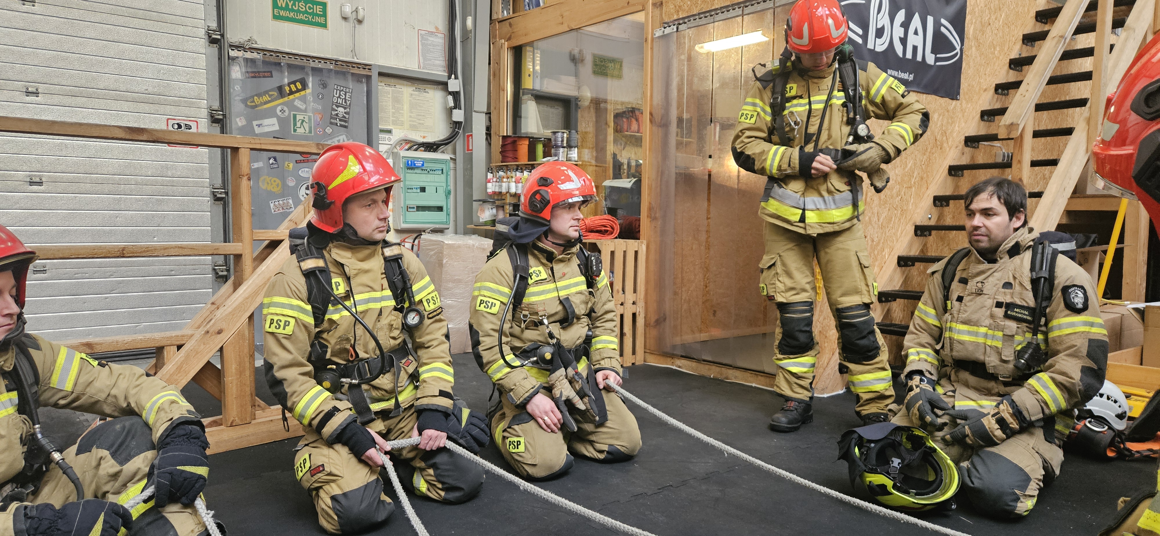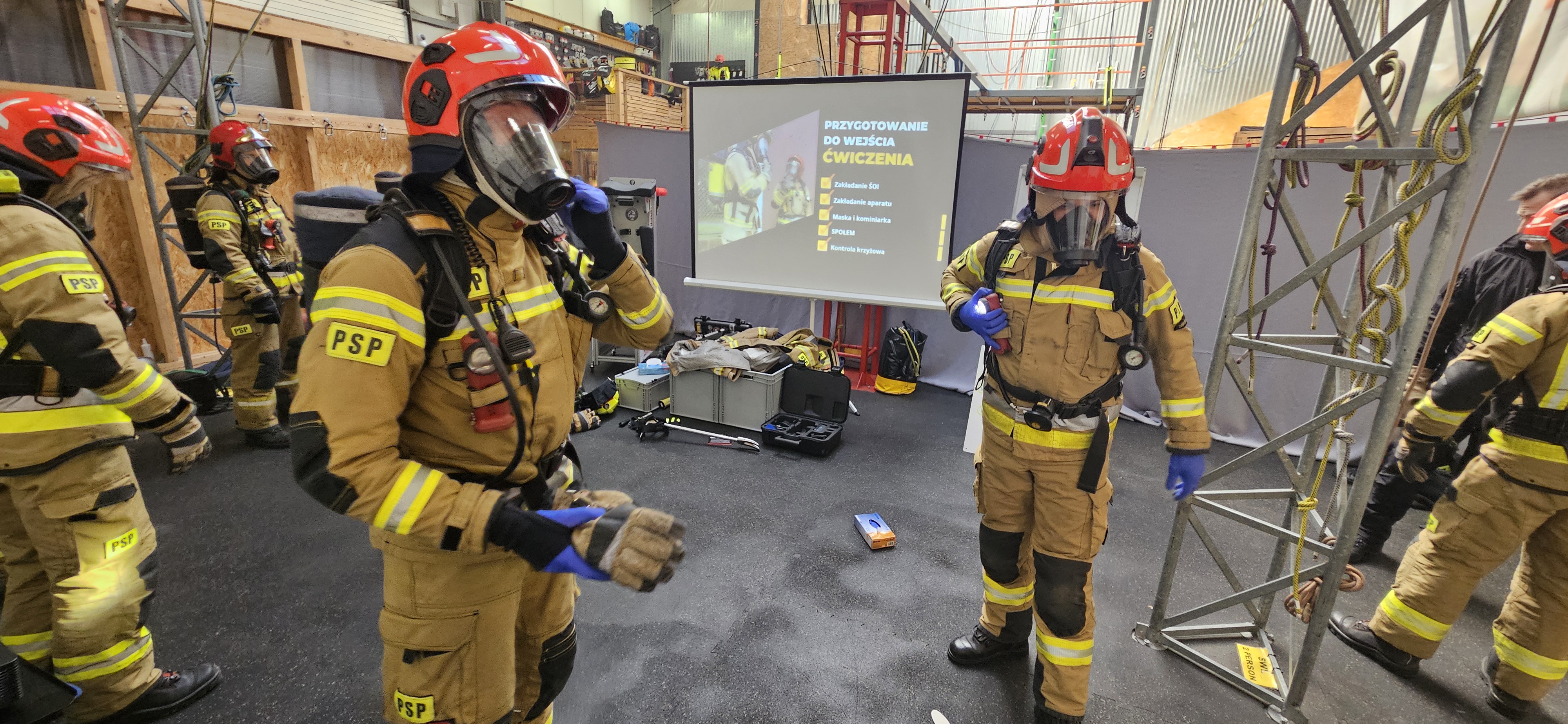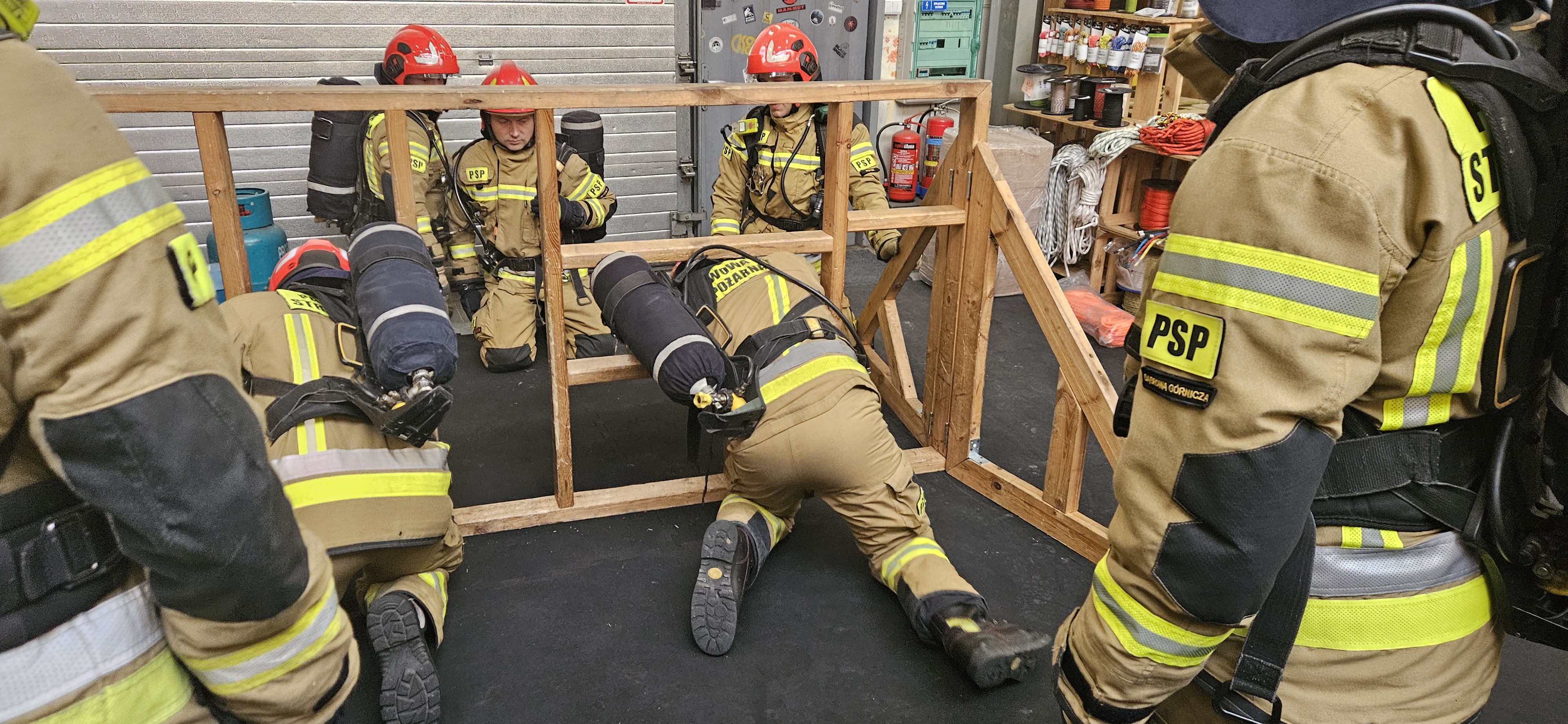 Ciekawym etapem szkolenia było także użycie właściwych technik ewakuacji ze strefy zagrożenia przez okna i wąskie przestrzenie oraz umiejętne przemieszczenie się przez przeszkody typu: liny, kable itp. Na finalnym etapie szkolenia, zaplanowano pokonywanie toru przeszkód, co okazało się bardzo wymagającym wyzwaniem dla uczestników. Na tym etapie strażacy mieli okazję zweryfikować swoją wiedzę i umiejętności nabyte w trakcje szkolenia.