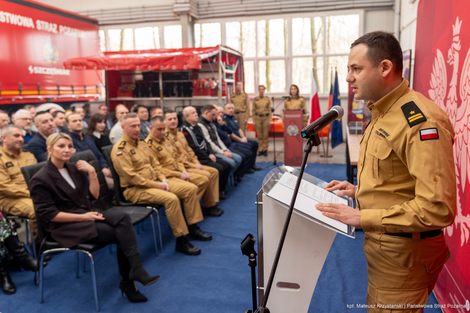 W wydarzeniu udział wzięli m.in. Śląski Komendant Wojewódzki PSP st. bryg. Damian Legierski, Komendant Miejski PSP w Dąbrowie Górniczej mł. bryg. Mariusz Rozenberg, Przewodnicząca Rady Miejskiej w Dąbrowie Góniczej Marta Bobrowska-Juroff, a także przedstawiciele kadry kierowniczej, funkcjonariusze Państwowej Straży Pożarnej, zaproszeni goście oraz partnerzy wspierający realizację inwestycji.