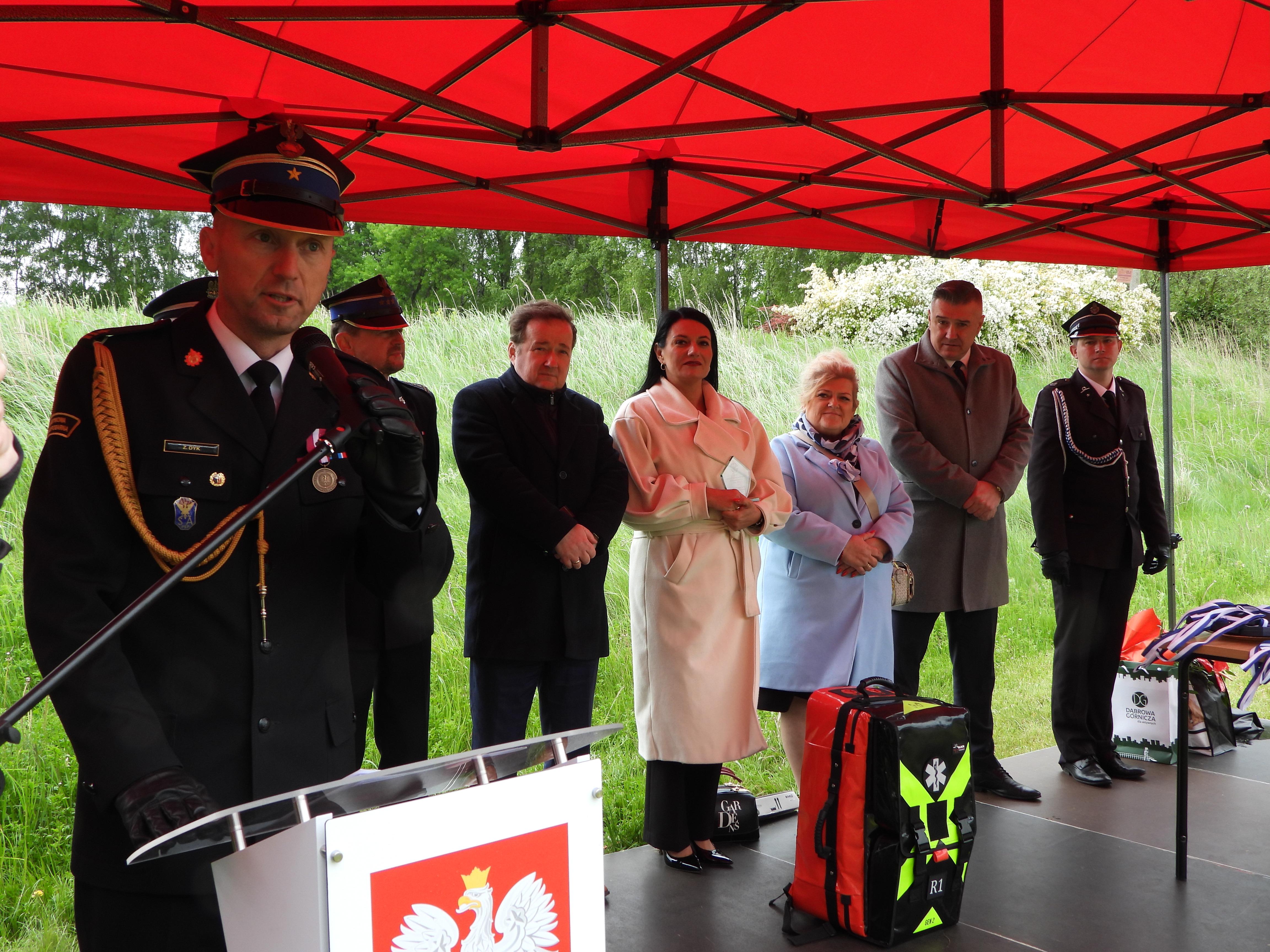 W uroczystości wzięli udział zaproszeni goście, w tym m.in. p.o. Zastępca Śląskiego Komendanta Wojewódzkiego PSP mł. bryg. Zbigniew Dyk oraz Komendant Miejski PSP w Dąbrowie Górniczej mł. bryg. Mariusz Rozenberg.