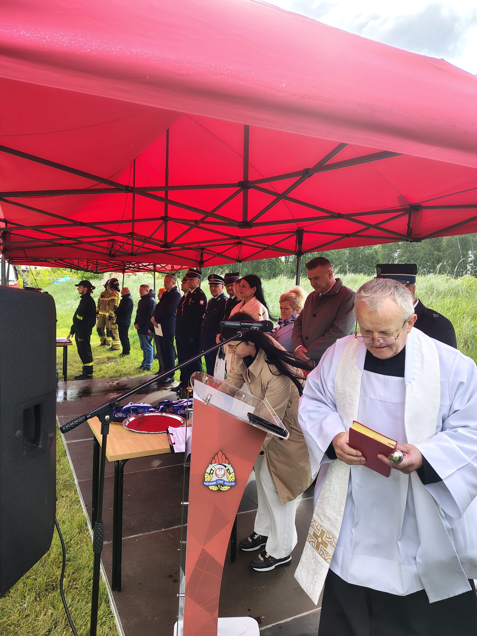 Po odczytaniu aktu przekazania średniego samochodu ratowniczo-gaśniczego, wręczono kluczyki kierowcy OSP Strzemieszyce, a następnie dokonano poświęcenia samochodu. Podczas oficjalnej części uroczystości, zaproszeni goście gratulowali jednostce nowego pojazdu oraz podkreślali profesjonalizm i gotowość strażaków Ochotniczej Straży Pożarnej w Strzemieszycach do niesienia pomocy.