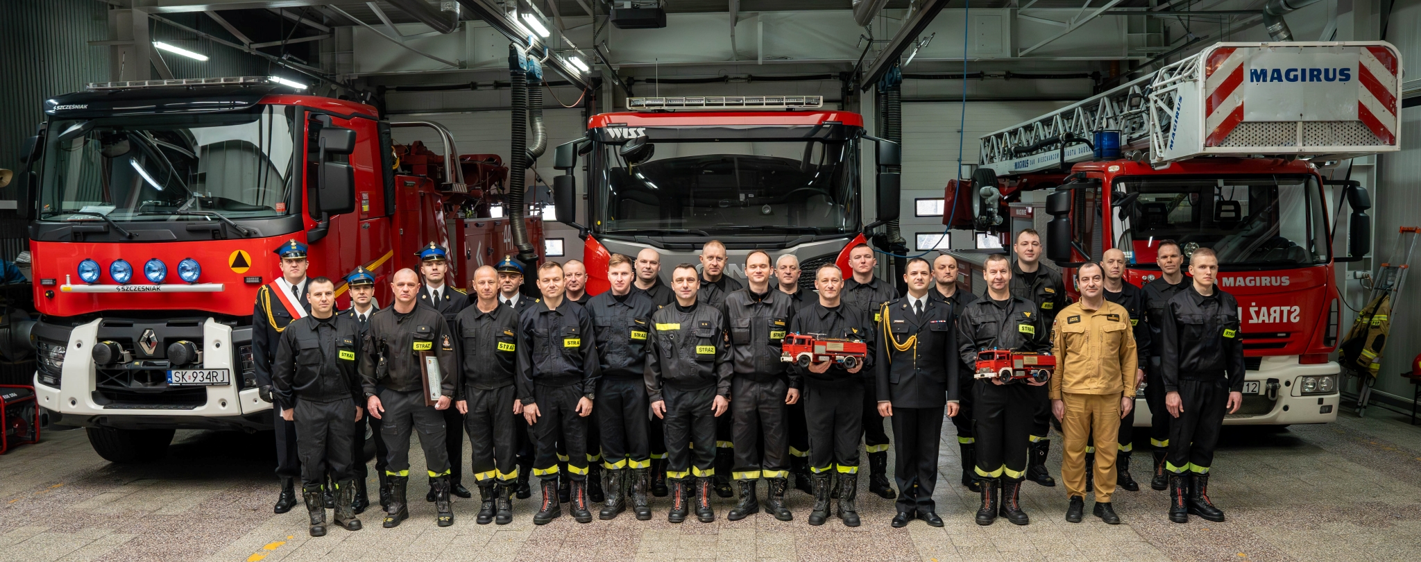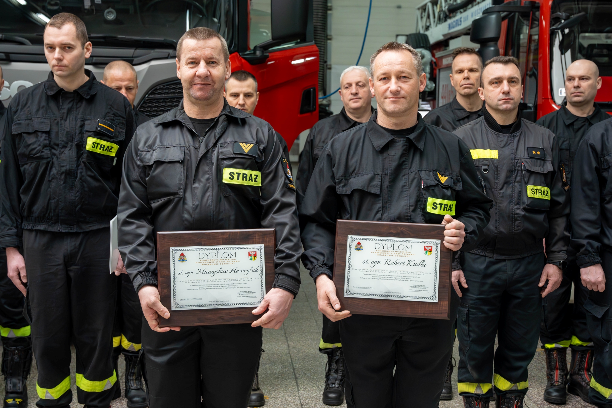 W dniu 22 lutego 2024 roku odbyła się uroczysta zbiórka z okazji złożenia ślubowania przez nowo mianowanego strażaka, zmiany stanowisk służbowych oraz przejścia na zaopatrzenie emerytalne trzech funkcjonariuszy Komendy Miejskiej Państwowej Straży Pożarnej w Dąbrowie Górniczej. Ze służbą pożegnali się st. ogn. Mieczysław Hawryluk i st. ogn. Robert Kudła, którzy pełnili służbę na Zmianie I oraz mł. ogn. Tomasz Kmita, który pełnili służbę na Zmianie II w JRG Dąbrowa Górnicza