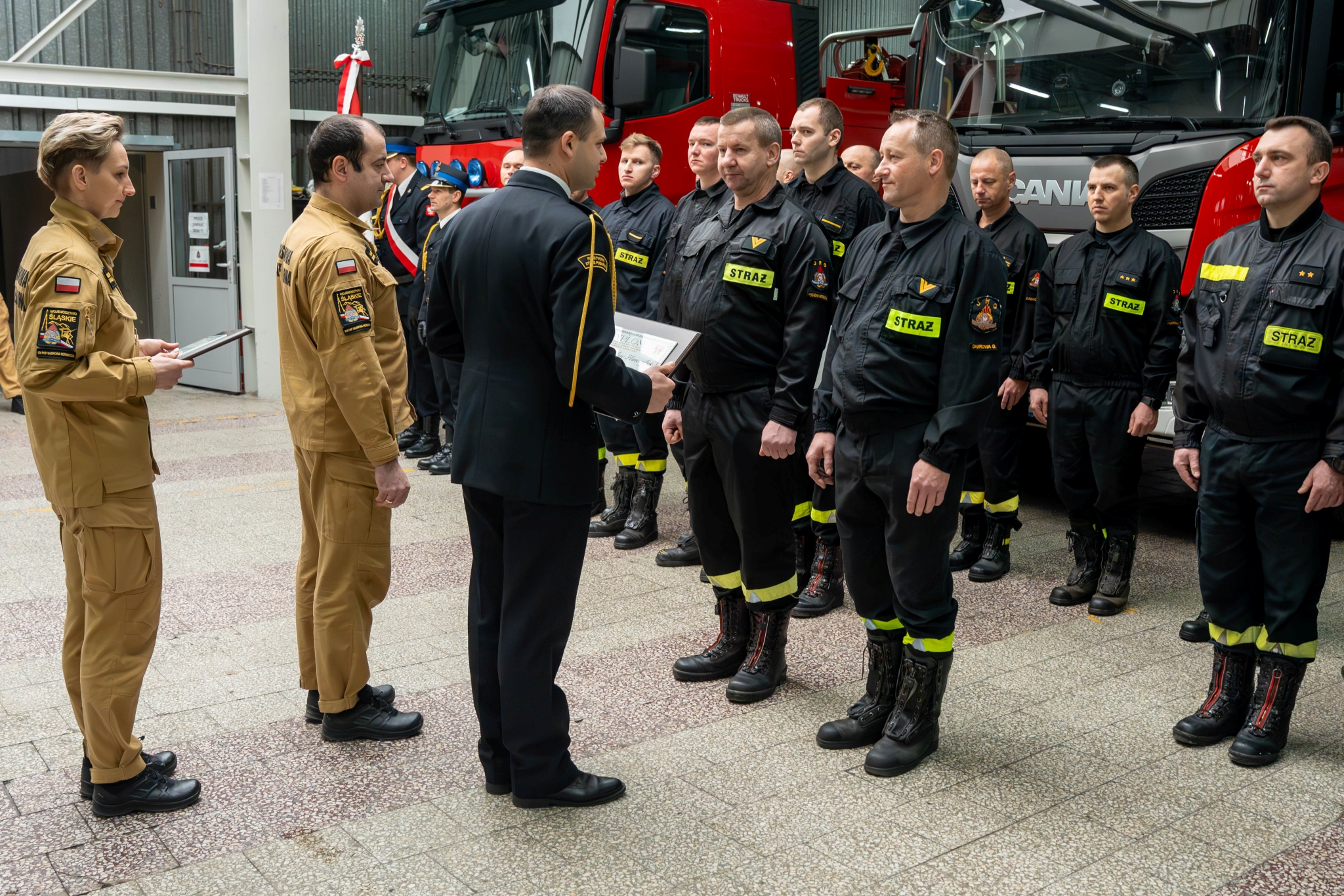 Komendant Miejski Państwowej Straży Pożarnej w Dąbrowie Górniczej mł. bryg. Mariusz Rozenberg podziękował odchodzącym na zaopatrzenie emerytalne za szczególne zaangażowanie w rozwój ochrony przeciwpożarowej oraz zasługi na rzecz Komendy Miejskiej Państwowej Straży Pożarnej w Dąbrowie Górniczej. Wręczając dyplomy, życzył dalszych sukcesów i wszelkiej pomyślności.