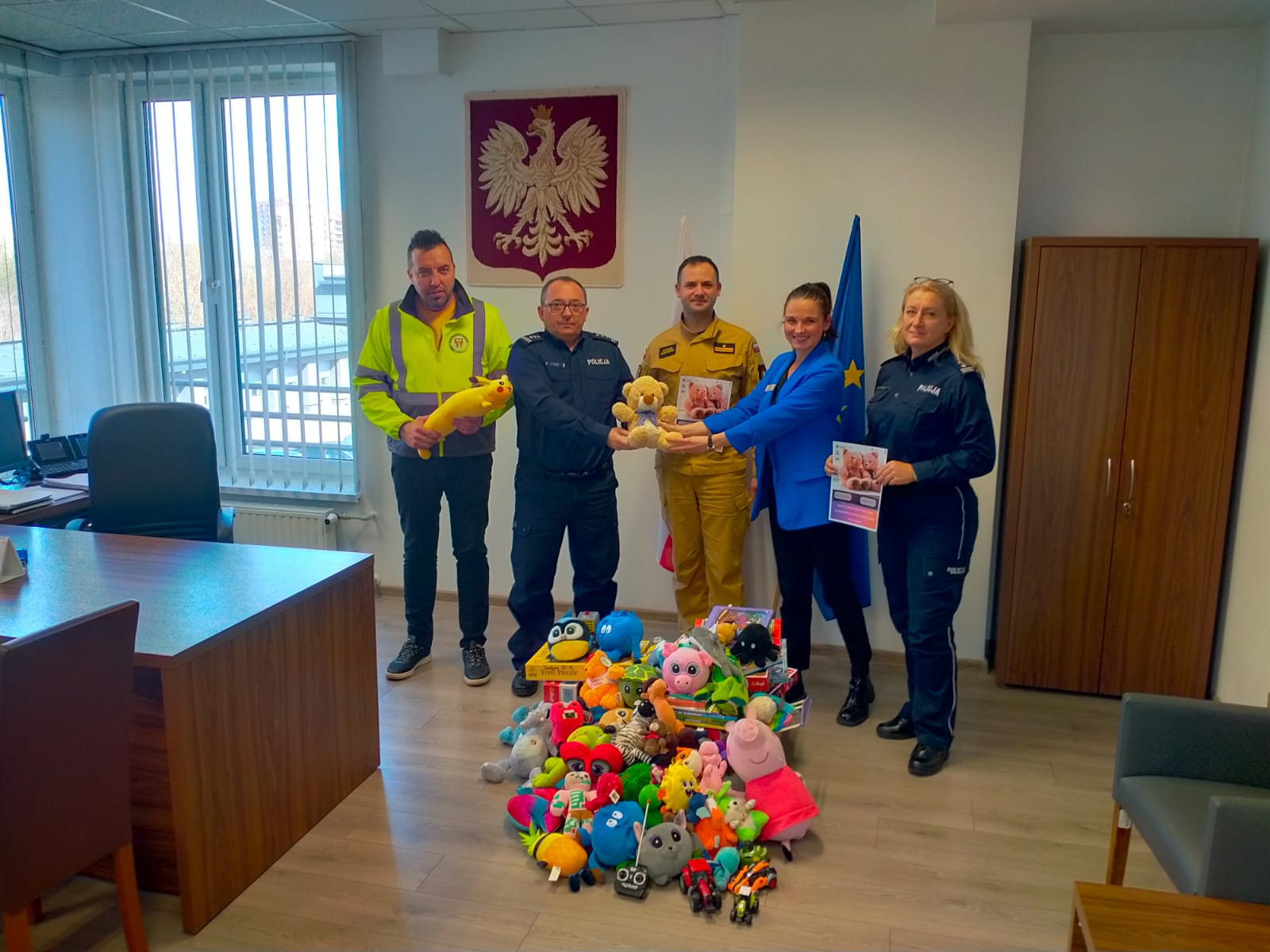 Zbiórka zabawek, dzięki której udało się zebrać mnóstwo maskotek, gier planszowych i puzzli została zorganizowana w ramach akcji „Miś od urzędnika”. Pomysłodawczynią przedsięwzięcia była pełnomocnik prezydenta miasta ds. współpracy z otoczeniem, Pani Beata Pisarczyk. Zabawki posłużą teraz strażakom i policjantom podczas akcji ratunkowych i interwencji.