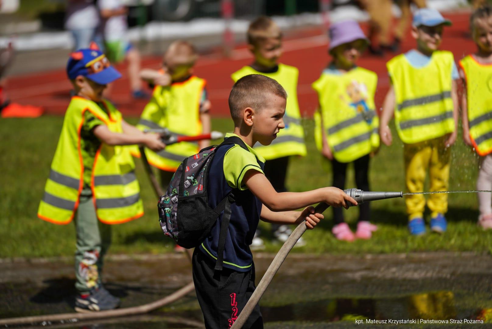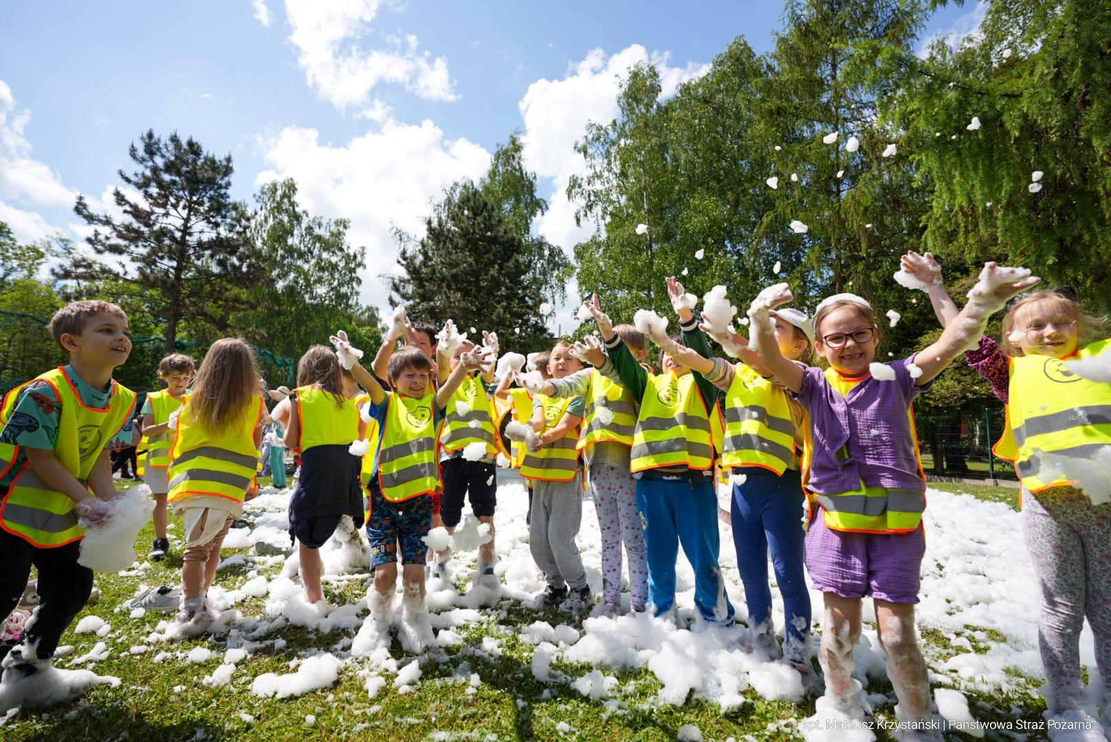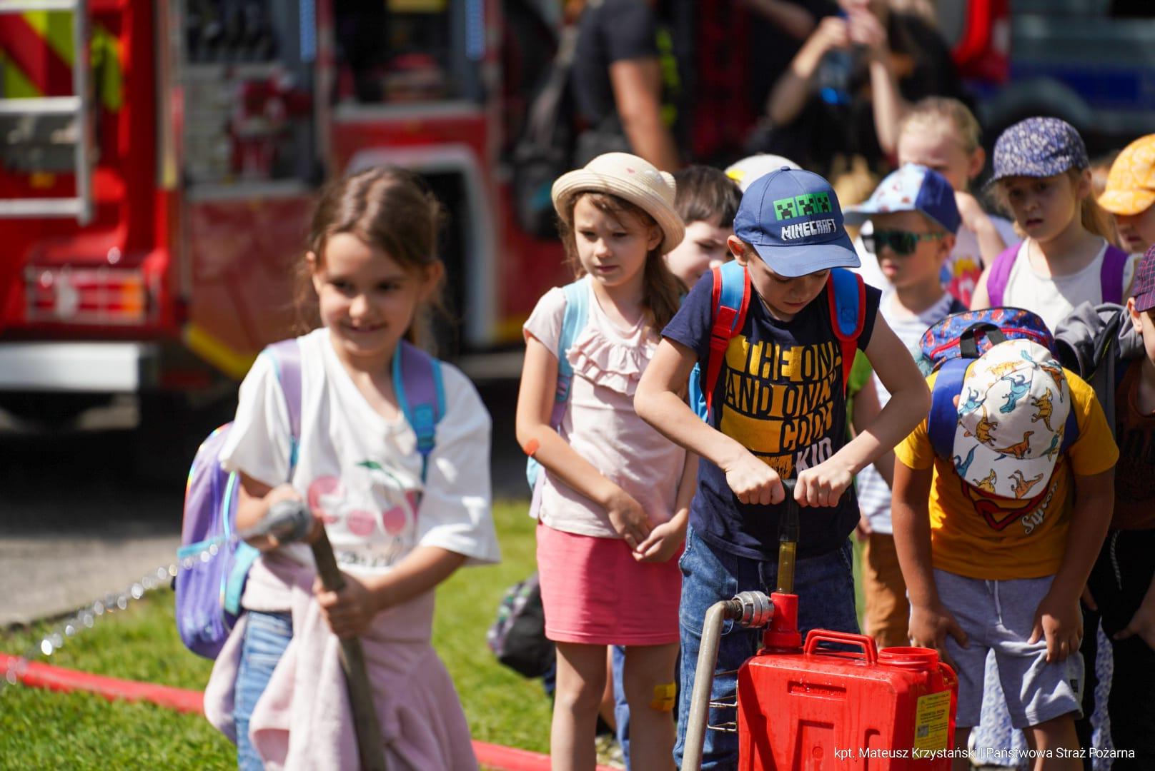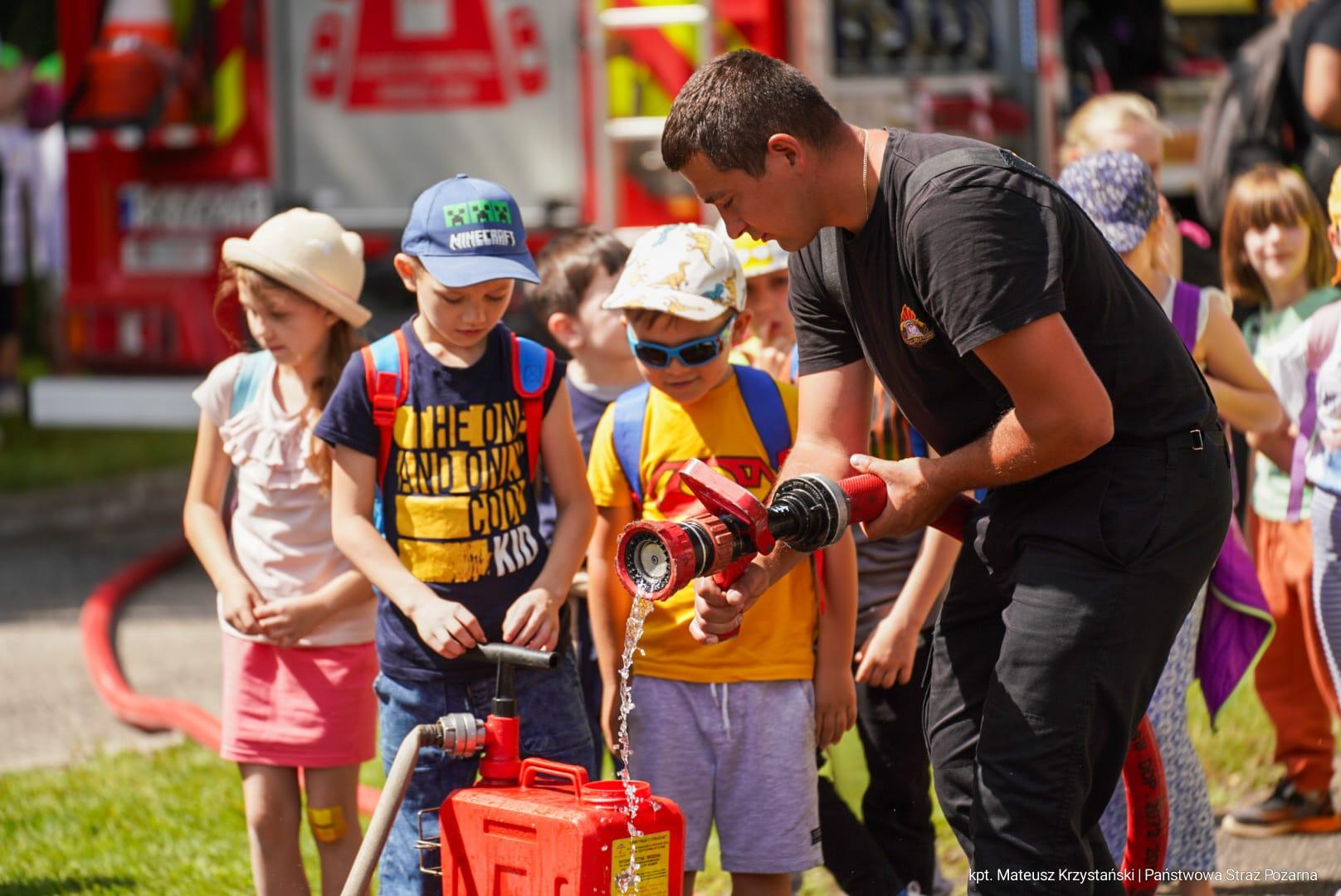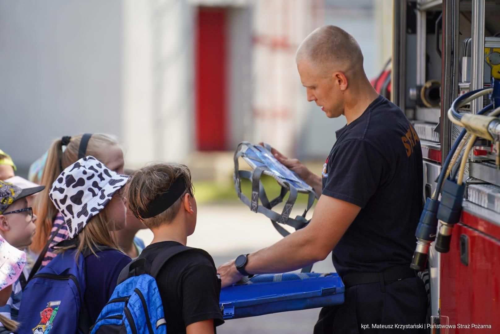 - pokaz sprzętu ratowniczo – gaśniczego (możliwość zobaczenia sprzętu do gaszenia pożarów, a także wyposażenia osobistego i ochronnego strażaka),
