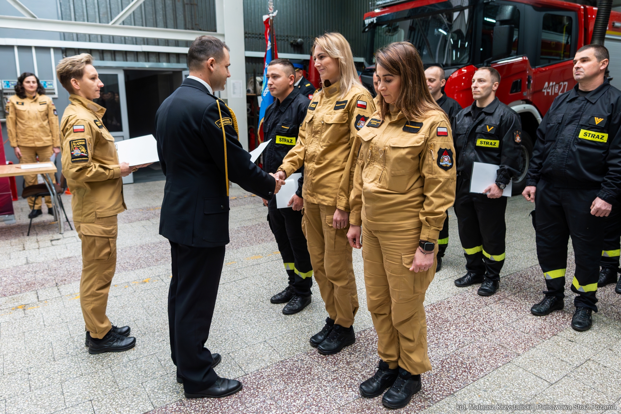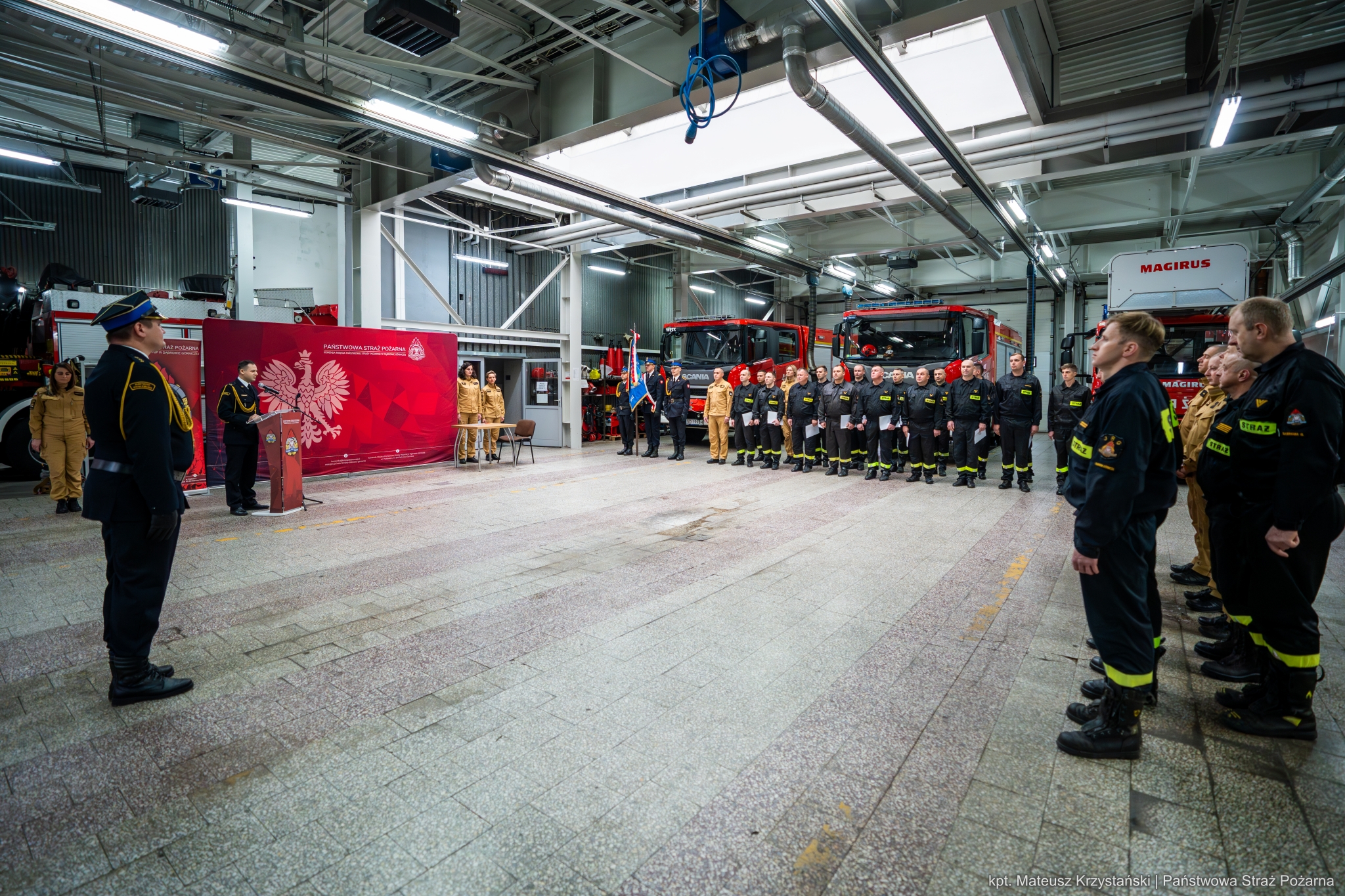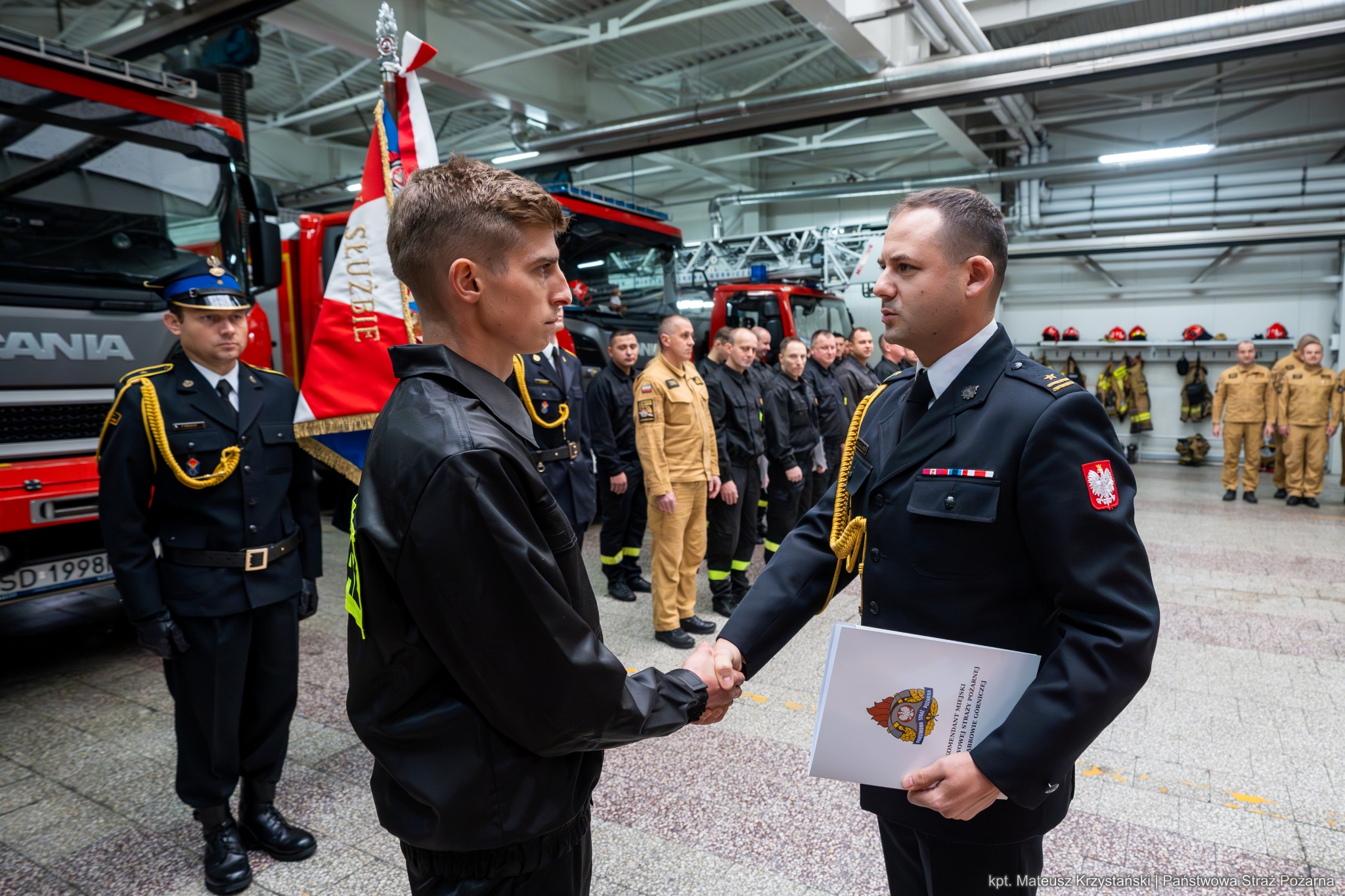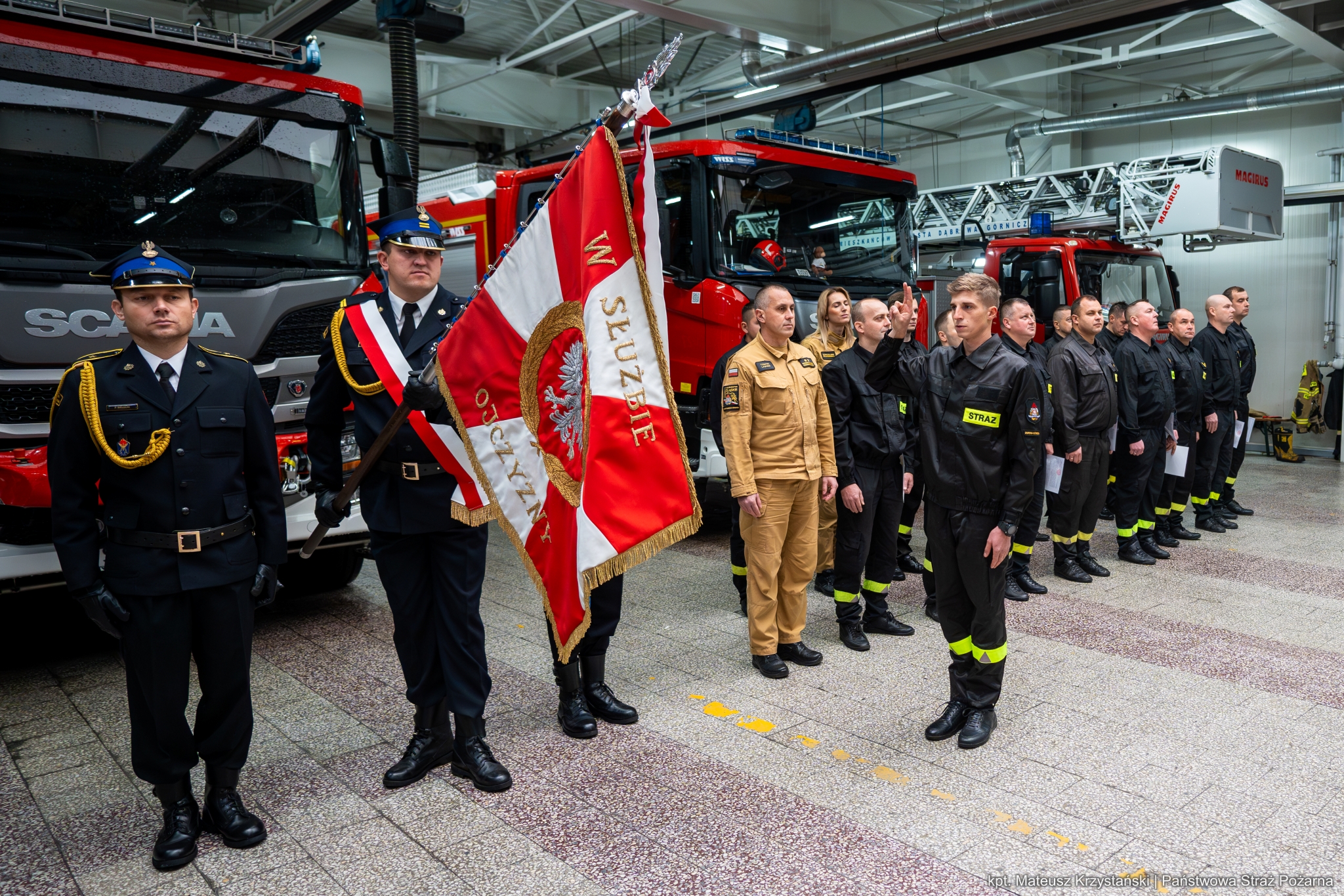 W dniu 20 listopada 2024 roku z okazji Narodowego Święta Niepodległości na terenie Komendy Miejskiej Państwowej Straży Pożarnej w Dąbrowie Górniczej odbyła się uroczysta zbiórka, podczas której nowo mianowany strażak złożył ślubowanie, funkcjonariuszom wręczono decyzje o zmianie stanowisk, awanse w stopniach służbowych oraz przejście do służby stałej.