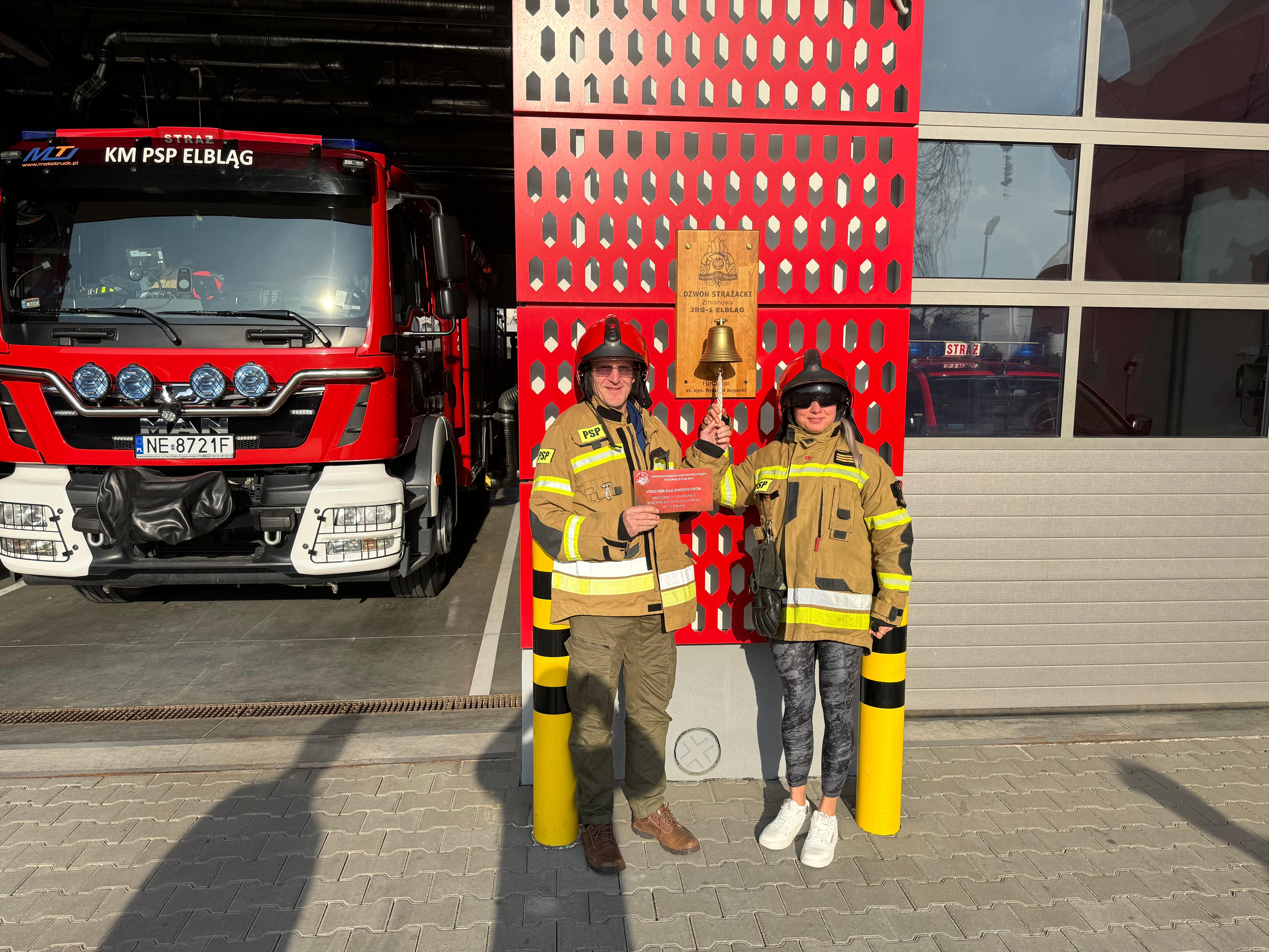 Podczas tegorocznego, 32 Finału WOŚP, KM PSP w Elblągu przekazała na licytację VOUCHER NA SPĘDZENIE DNIA ZE STRAŻAKAMI. Serdecznie dziękujemy wszystkim, którzy zaangażowali się tą akcję, a zwycięzcy licytacji gratulujemy. Warto nadmienić, że zwycięzca postanowił Voucher przekazać jako prezent dla swoich rodziców. Dziś możemy się pochwalić, że niedawno mieliśmy przyjemność gościć Pana Tomasza i Panią Ewelinę którzy zjawili się ze zwycięskim voucherem w naszej jednostce.