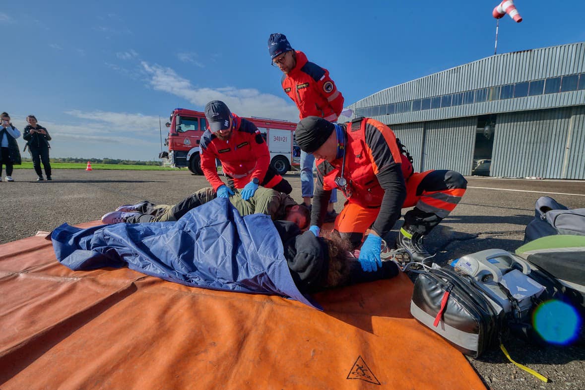 11 października na elbląskim lotnisku strażacy, policjanci oraz ratownicy medyczni przeprowadzili wspólne ćwiczenia. Elbląskie lotnisko stało się scenerią niecodziennych i niebezpiecznie wyglądających wydarzeń, podczas których doszło do wybuchu oraz pożaru w hangarze wypełnionym samolotami, a także pościgu za sprawcą całego zdarzenia.