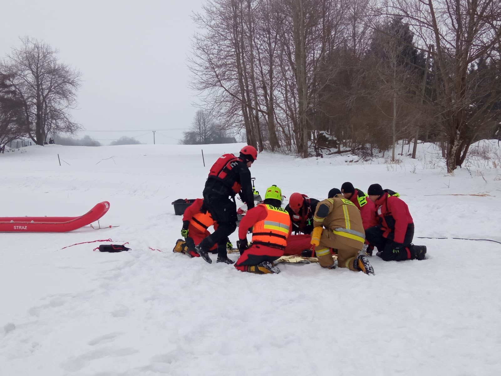 Ćwiczenia strażaków na zamarzniętych akwenach