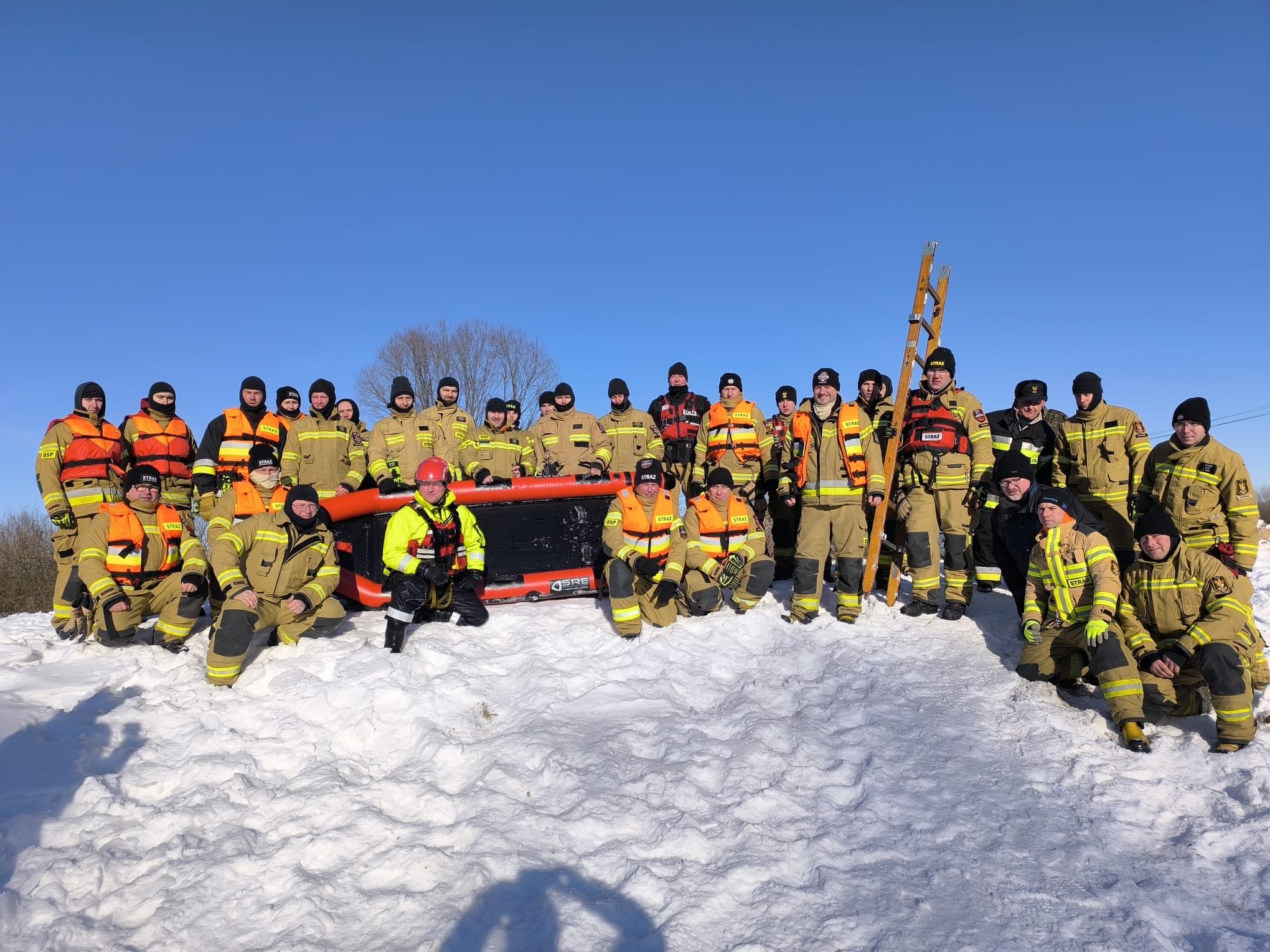 Ćwiczenia z zakresu ratownictwa wodnego i lodowego to dobra okazja do doskonalenia współpracy między strażakami PSP i strażakami ochotnikami z lokalnych jednostek, którzy często podejmują działania w pierwszej kolejności, również w sytuacjach zagrożenia na zamarzniętych akwenach.