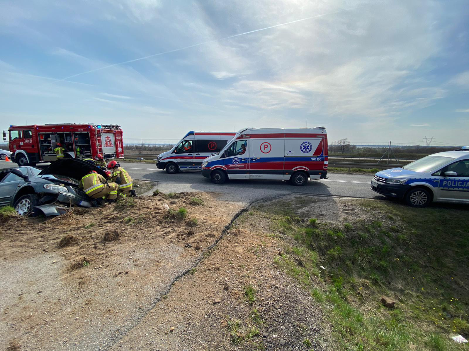 Ze wstępnych ustaleń policji wynika, że kierowca osobowego Volkswagena Passata z niewyjaśnionych przyczyn zjechał na sąsiedni pas i zmusił prawidłowo jadącego kierowcę Chryslera do ucieczki. W wyniku tego zdarzenia minivan, którym podróżowało 6 osób, zjechał z drogi i wpadł do przydrożnego rowu.