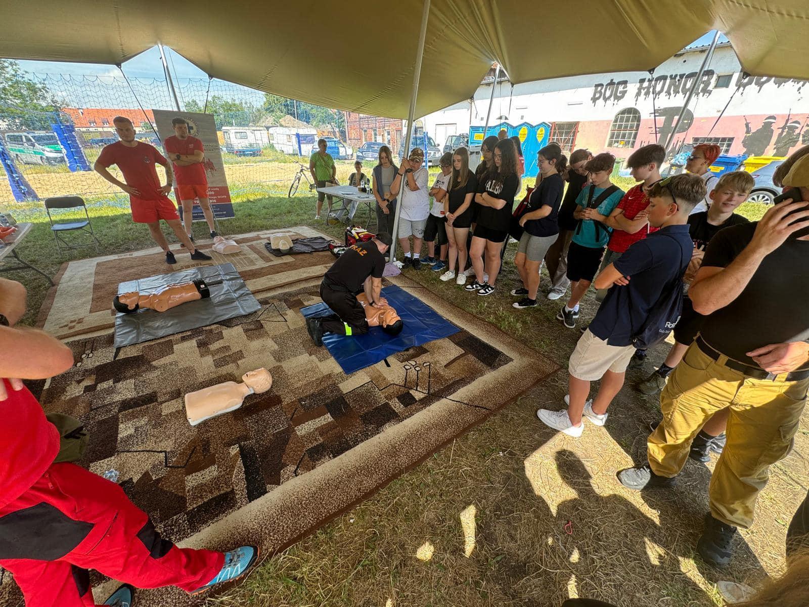Elbląscy strażacy wraz z ochotnikami z OSP RW Elbląg przygotowali krótki pokaz ratownictwa wodnego, którego celem było zaprezentowanie sposobów podjęcia osoby poszkodowanej z wody, a także uzmysłowienie uczestnikom wydarzenia jak zachowuje się osoba tonąca.