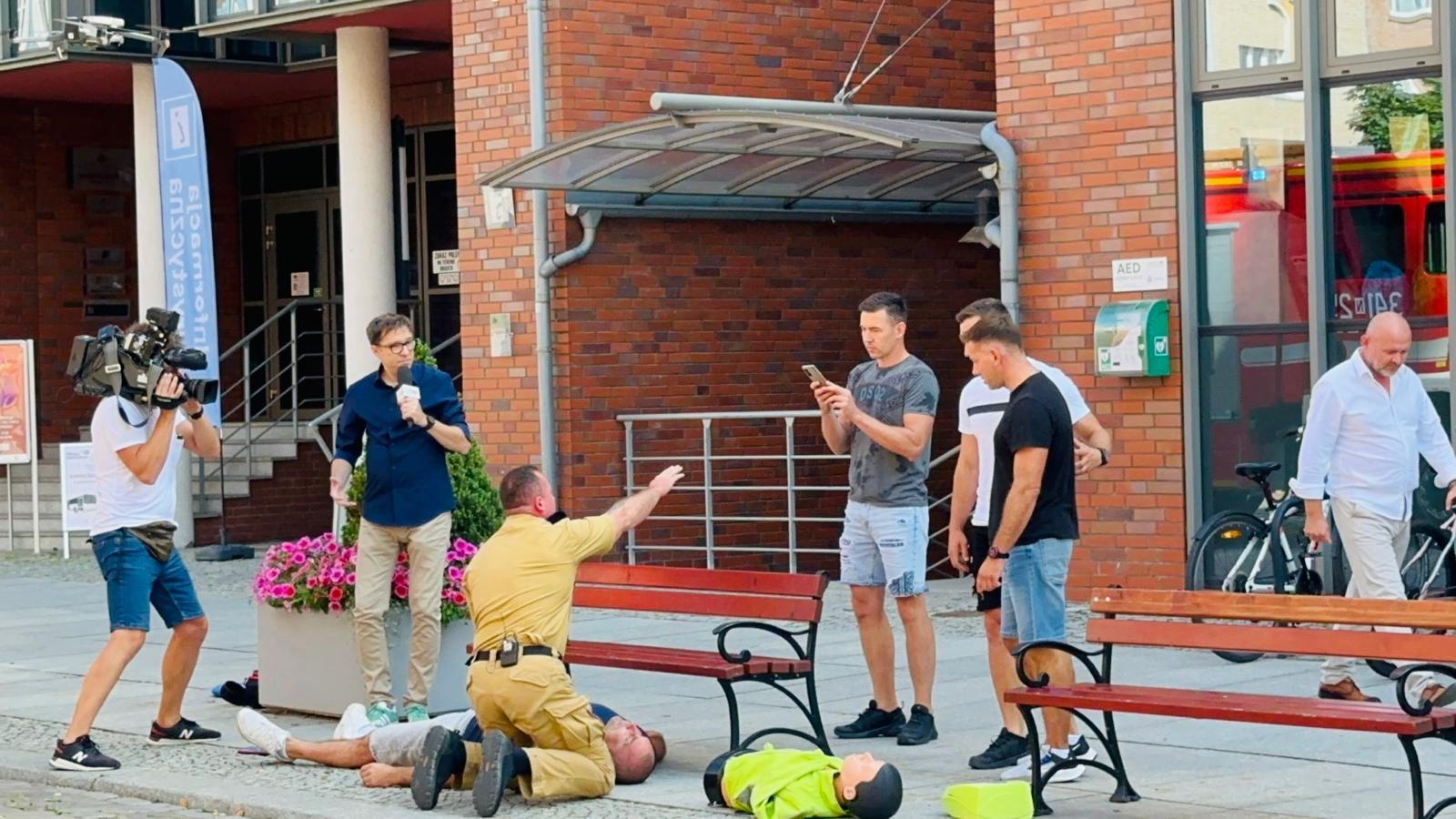 W następnym epizodzie przedstawiliśmy kolejną sytuację ,,z życia wziętą” która może spotkać każdego z Nas. Osoba odpoczywająca na elbląskiej starówce zasłabła i straciła przytomność.
