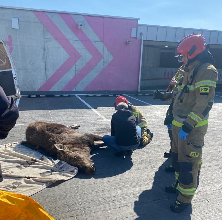 We wtorek 26 kwietnia 2022 roku, około godziny 09:30 zastępy z jednostki Ratowniczo-Gaśniczej nr 2 w Elblągu zostały zadysponowane do nietypowego zdarzenia, dotyczącego obecności łosia się na terenie wielopoziomowego parkingu, jednego z elbląskich centrów handlowych.