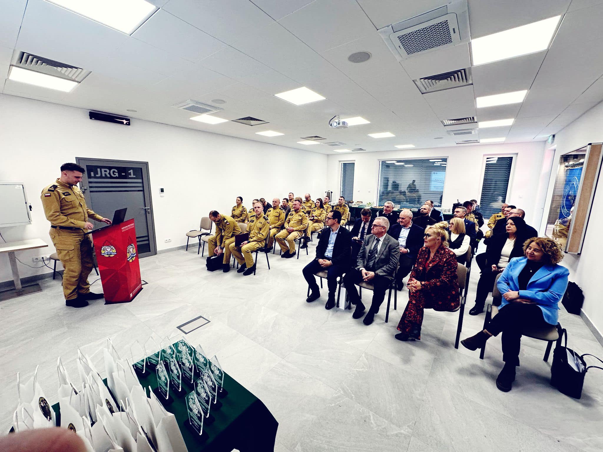 Uroczystość rozpoczęła się od złożenia meldunku Warmińsko – Mazurskiemu Komendantowi Wojewódzkiemu PSP. Centralną część wydarzenia stanowiła prezentacja podsumowująca działalność z zakresu ochrony przeciwpożarowej realizowaną w powiecie elbląskim w roku 2024, którą przedstawił Komendant Miejski PSP w Elblągu mł. bryg. Bogdan Grzymowicz. Po podsumowaniu przedsięwzięć realizowanych w roku ubiegłym Komendant przedstawił plany na rok bieżący.