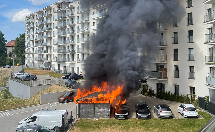 18 czerwca 2023 r. około godziny 15:20 do Stanowiska Kierowania Komendanta Miejskiego PSP w Elblągu wpłynęła informacja o pożarze wiaty śmietnikowej na terenie jednego z elbląskich osiedli mieszkaniowych przy ul. Królewieckiej.