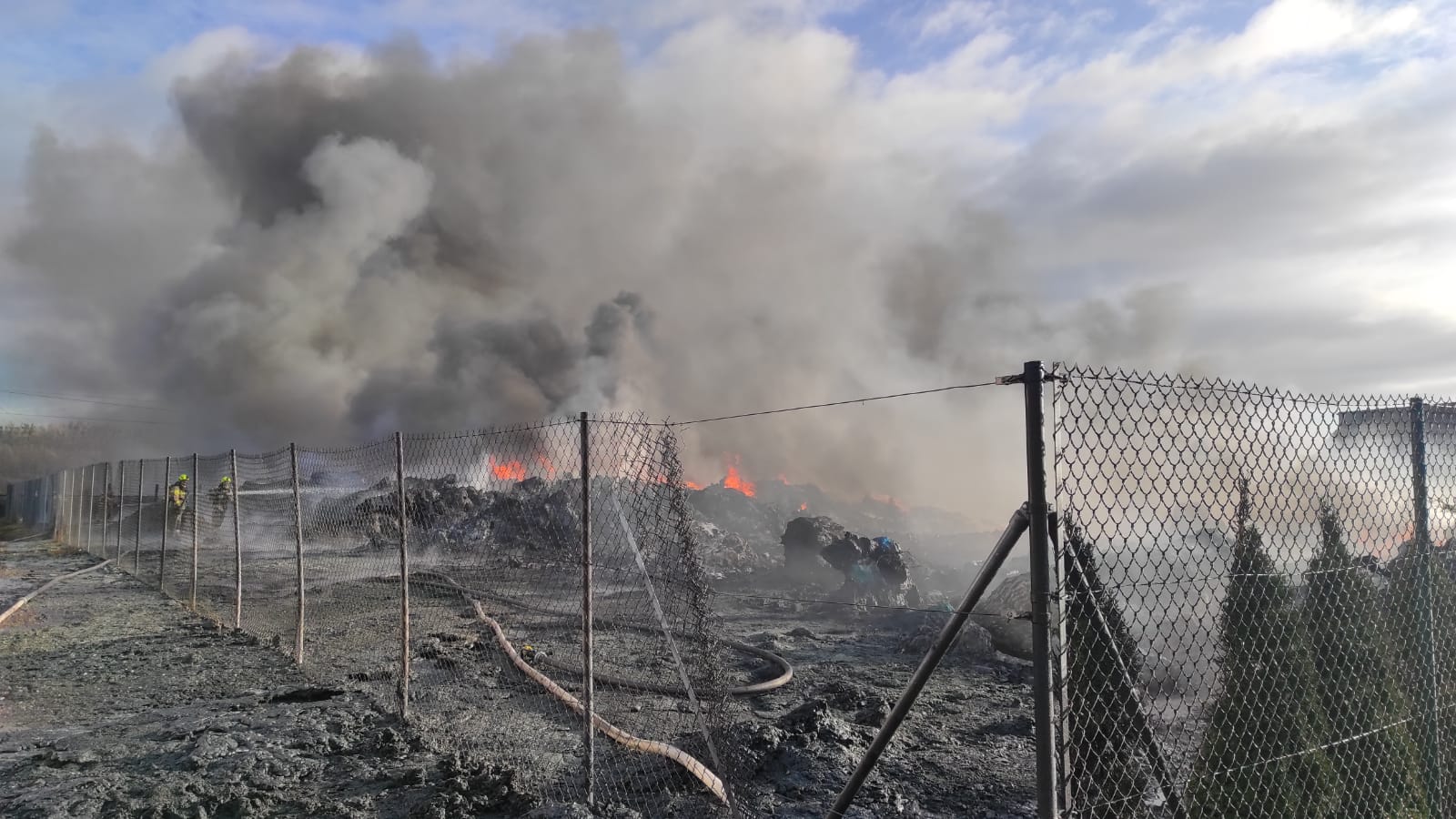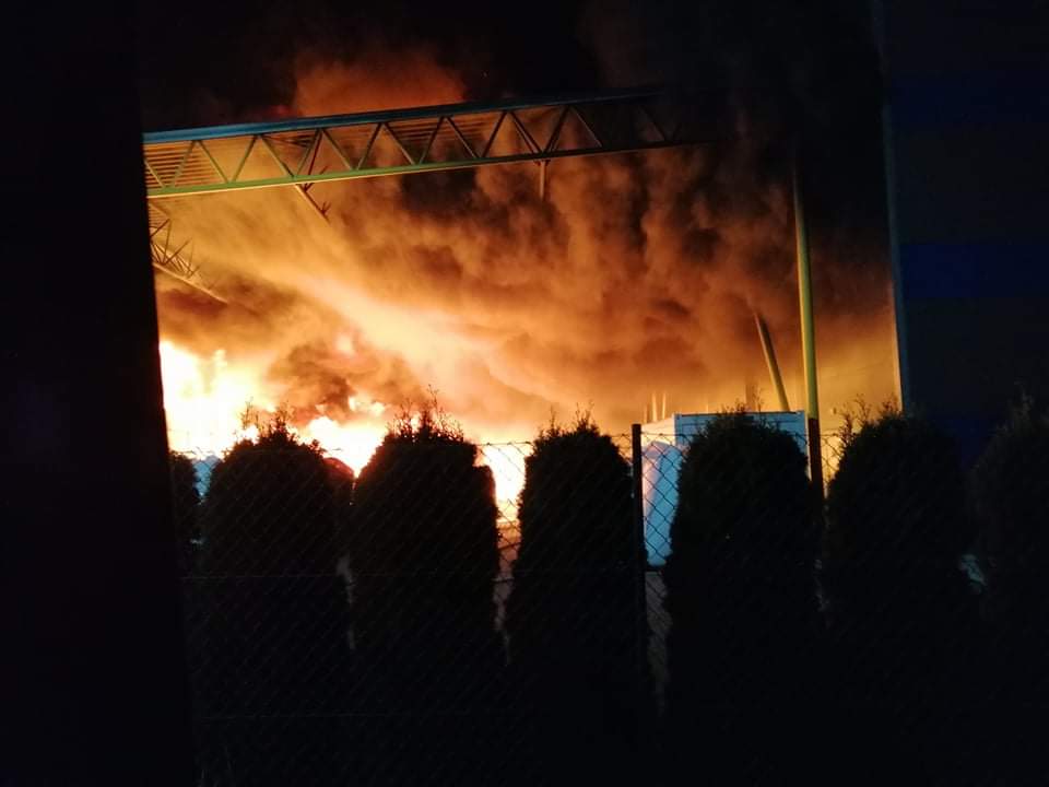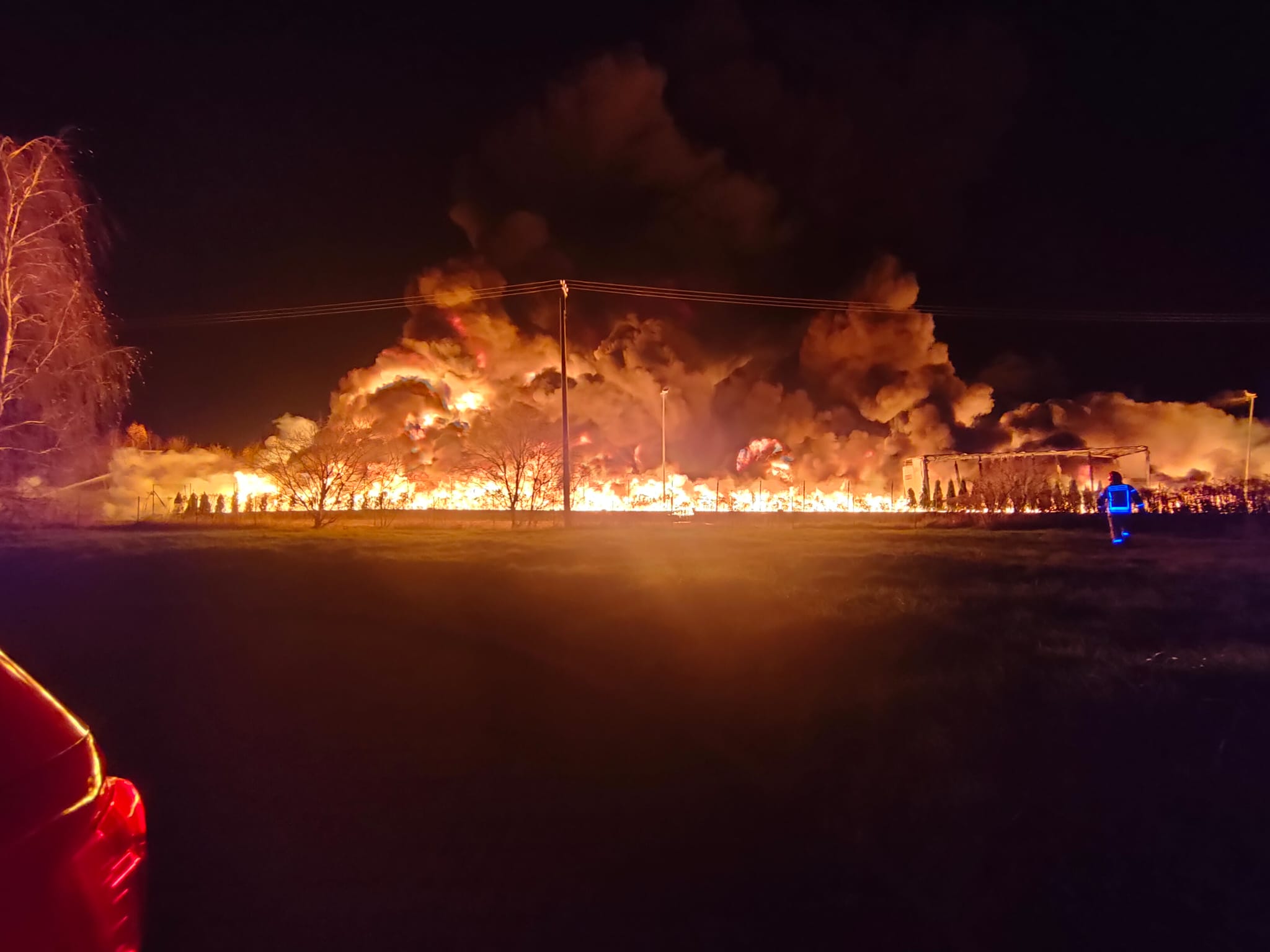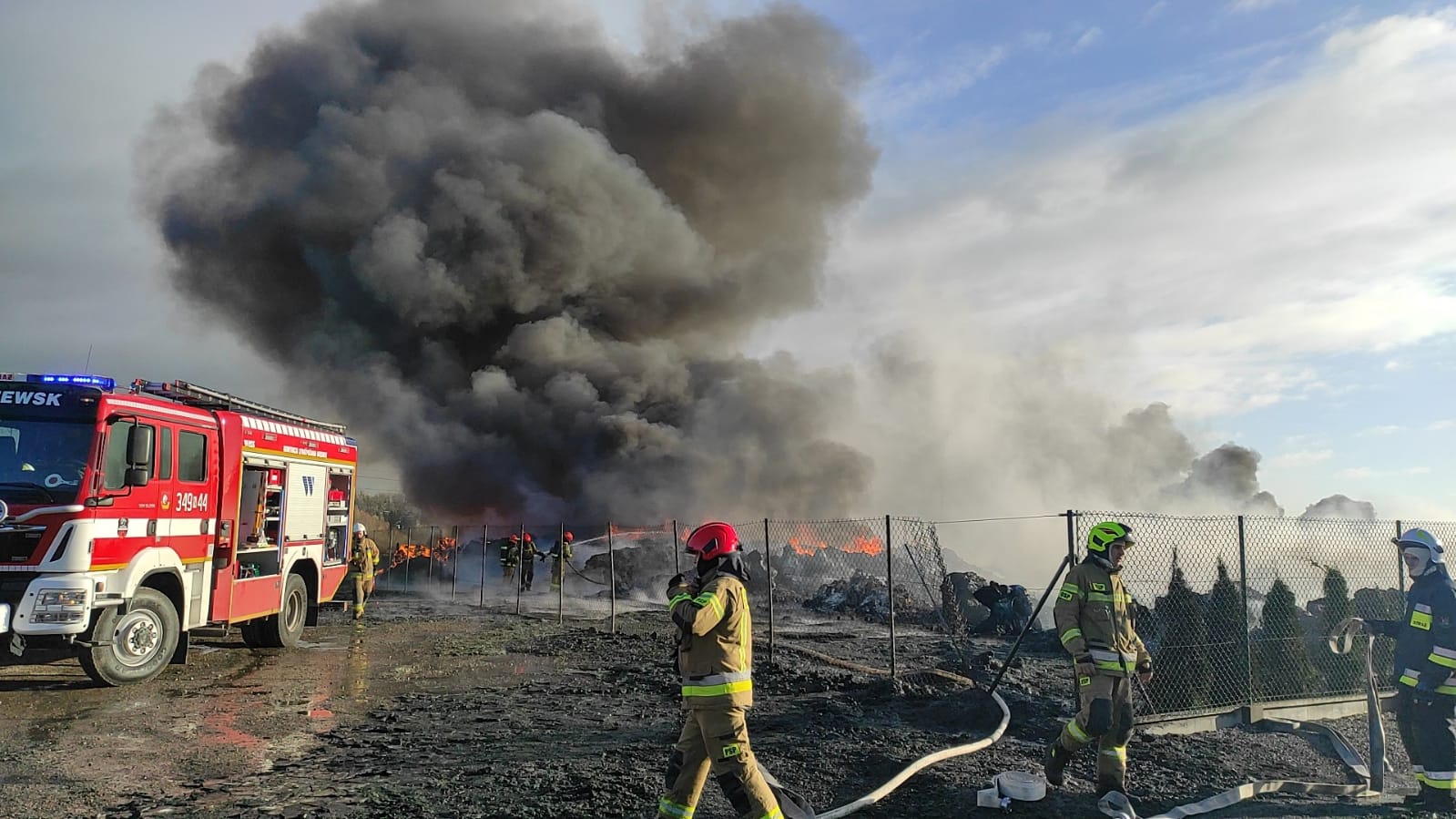 Pożar w zakładzie przerobu odpadów w Gronowie Górnym - powiat elbląski