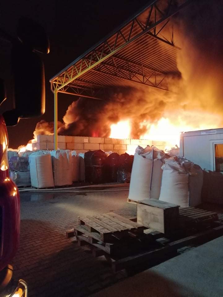Na miejscu strażacy zastali rozwinięty pożar składowiska z odpadami sztucznymi przeznaczonymi do produkcji granulatu. Pracownicy opuścili budynek przed przybyciem jednostek ochrony przeciwpożarowej (JOP). Intensywnie rozwijający się pożar zagrażał sąsiedniej hali produkcyjno-magazynowej. Ponadto zakład znajdował się w bezpośrednim sąsiedztwie torowiska PKP oraz budynku mieszkalnego. Z uwagi na to, działania straży musiały być prowadzone zarówno w obronie zagrożonych obiektów jaki i w natarciu na ognisko pożaru. Z uwagi na duże zapotrzebowanie środka gaśniczego, ograniczoną pojemność zbiornika ppoż. i ograniczoną wydajność sieci hydrantowej na miejsce zadysponowano dodatkowe siły i środki z terenu powiatu elbląskiego, w tym między innymi SCCN z OSP Krzewsk ze zbiornikiem o pojemności 17 tys. litrów wody oraz SPGaz z JRG 1 z Elbląga z zapasem sprzętu ochrony układu oddechowego.